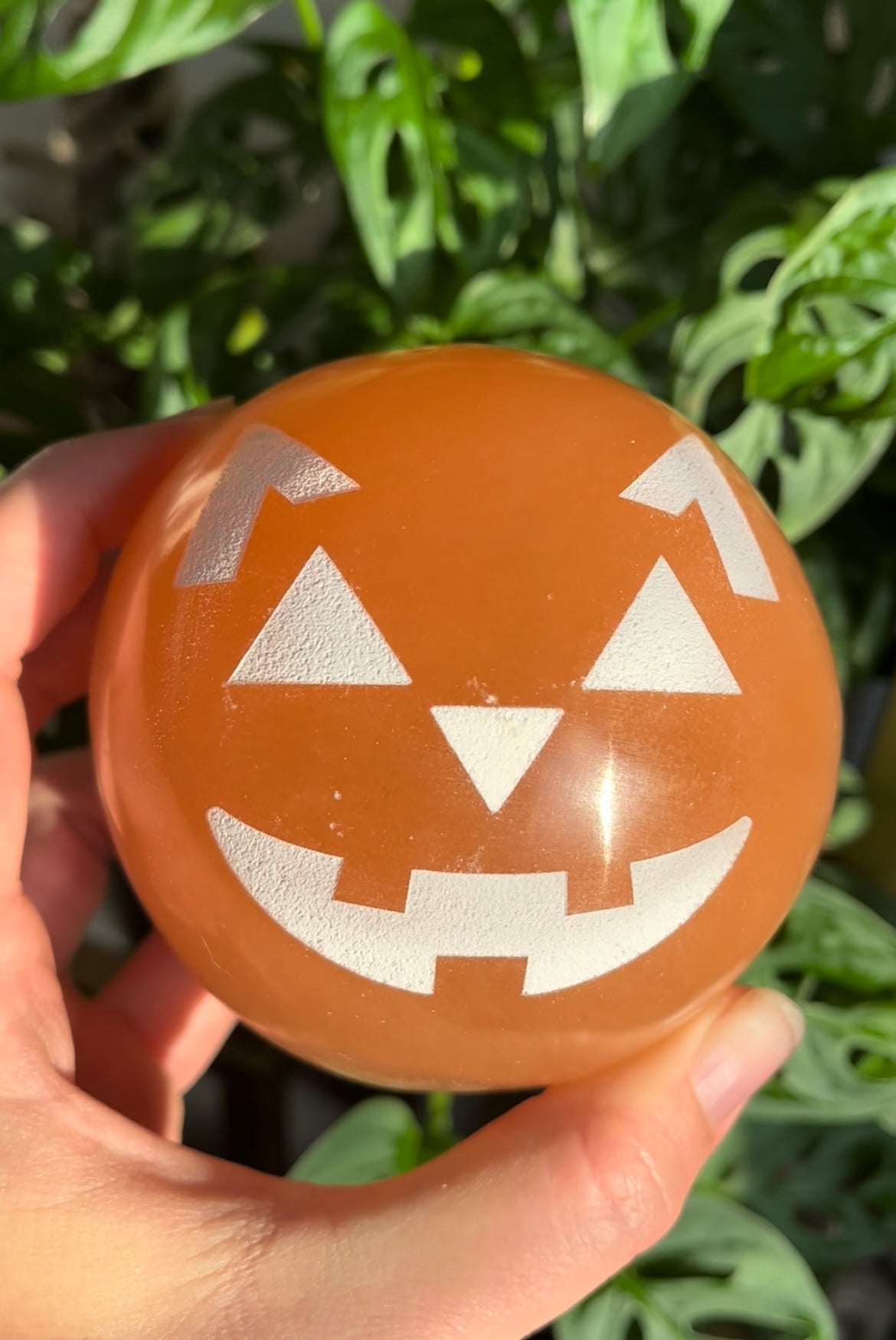 *LIMITED EDITION* Peach Selenite Jack-o-Lantern Spheres