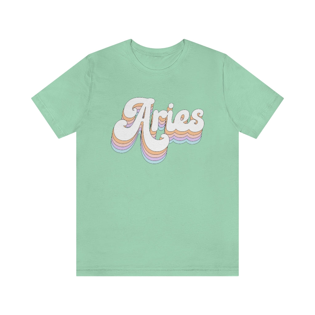 The perfect birthday gift for the Aries in your life! Show off your Astrology / horoscope sign with this Retro Rainbow Zodiac Themed Shirt, hoodie, or sweatshirt.