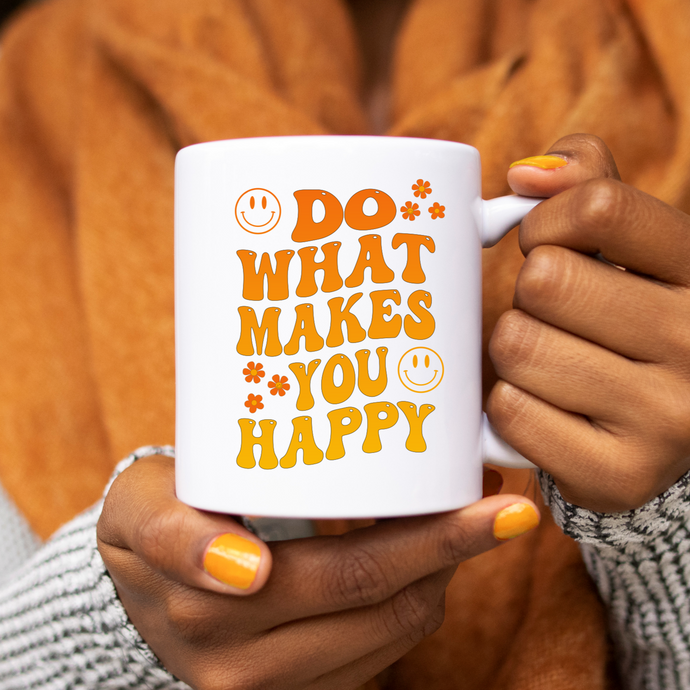 Do What Makes You Happy - Positive Quotes Coffee Mug, Retro Colorful Bubble Letters Tea Cup, Happy Quotes Coffee Cup
