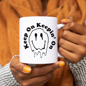 Keep on Keeping On Melting Smiley Face Coffee Mug -Trippy Smiley Face Tea Mug, Drippy happy Face, Gift Coffee Lover Gift for tea lover y2k 90s grunge