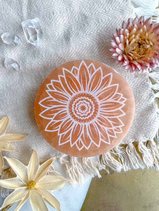 "Bloom" PEACH Selenite Crystal Disk Spring Floral Easter Home Decor