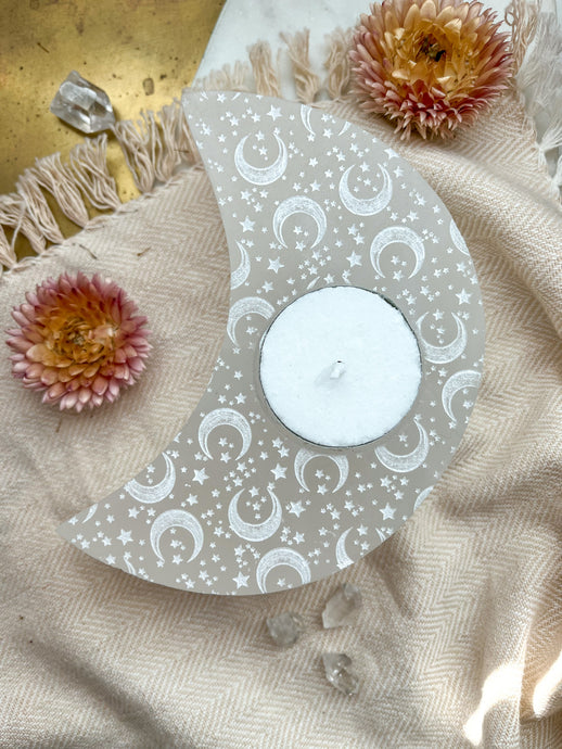 DOORBUSTER "Celestial Bodies" Large Crescent Moon-Shaped Selenite Tea Light Candle Holder