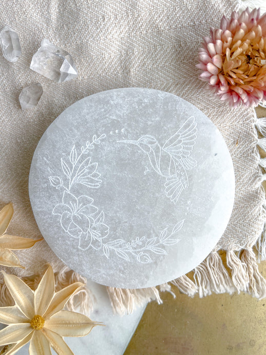 "Hummingbird" Easter Spring White Selenite Crystal Charging Plate Home Decor Gift