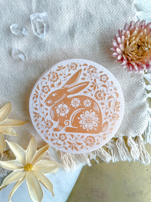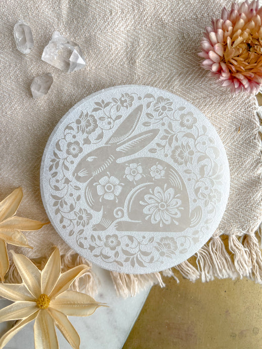 "White Rabbit" Easter Spring White Selenite Crystal Charging Plate Home Decor Gift