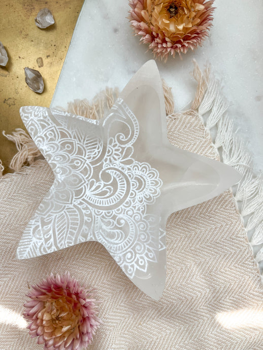 "Henna Prayer" Selenite Jewelry Trinket Box