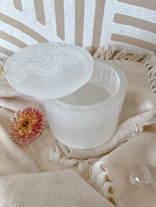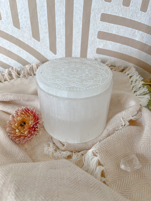 "Radiate Bliss" Mandala Selenite Jewelry Trinket Box