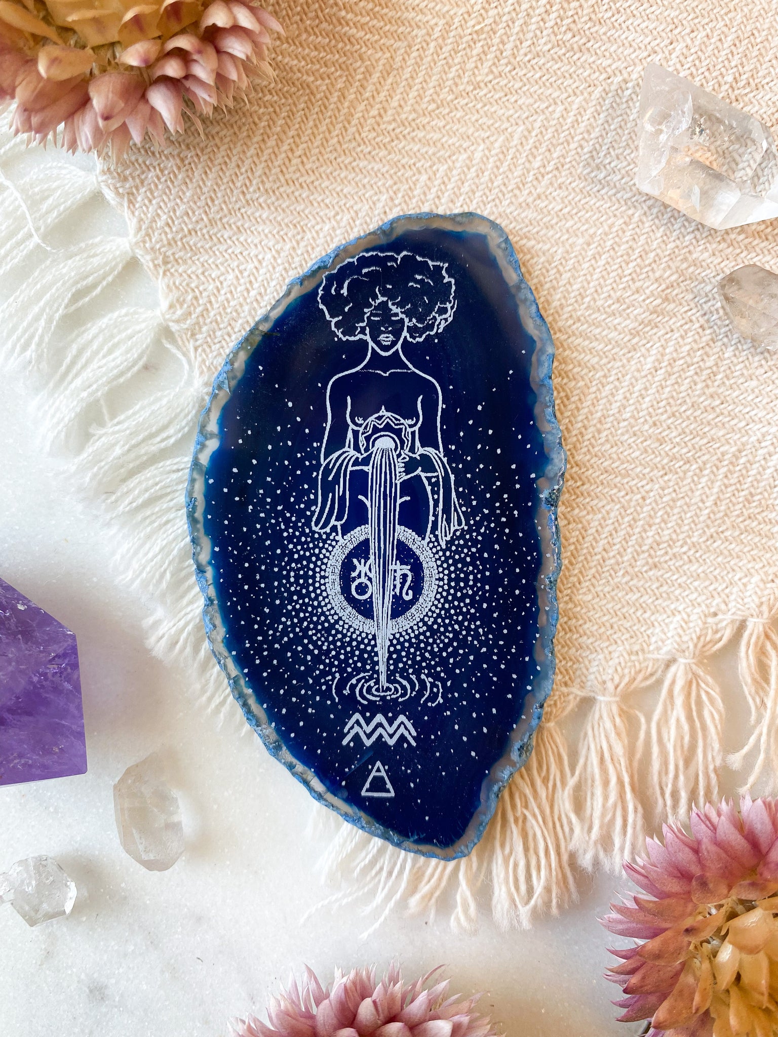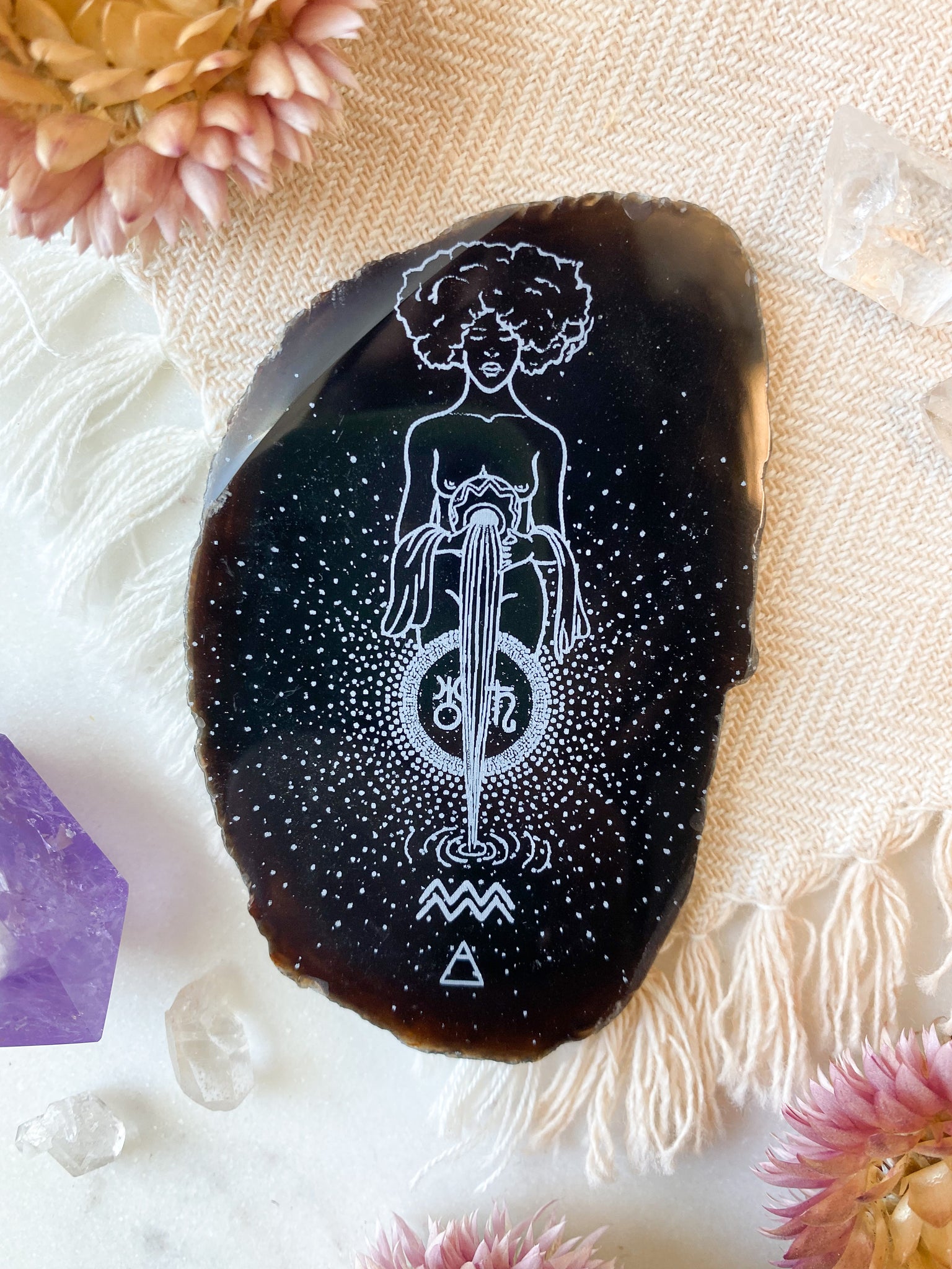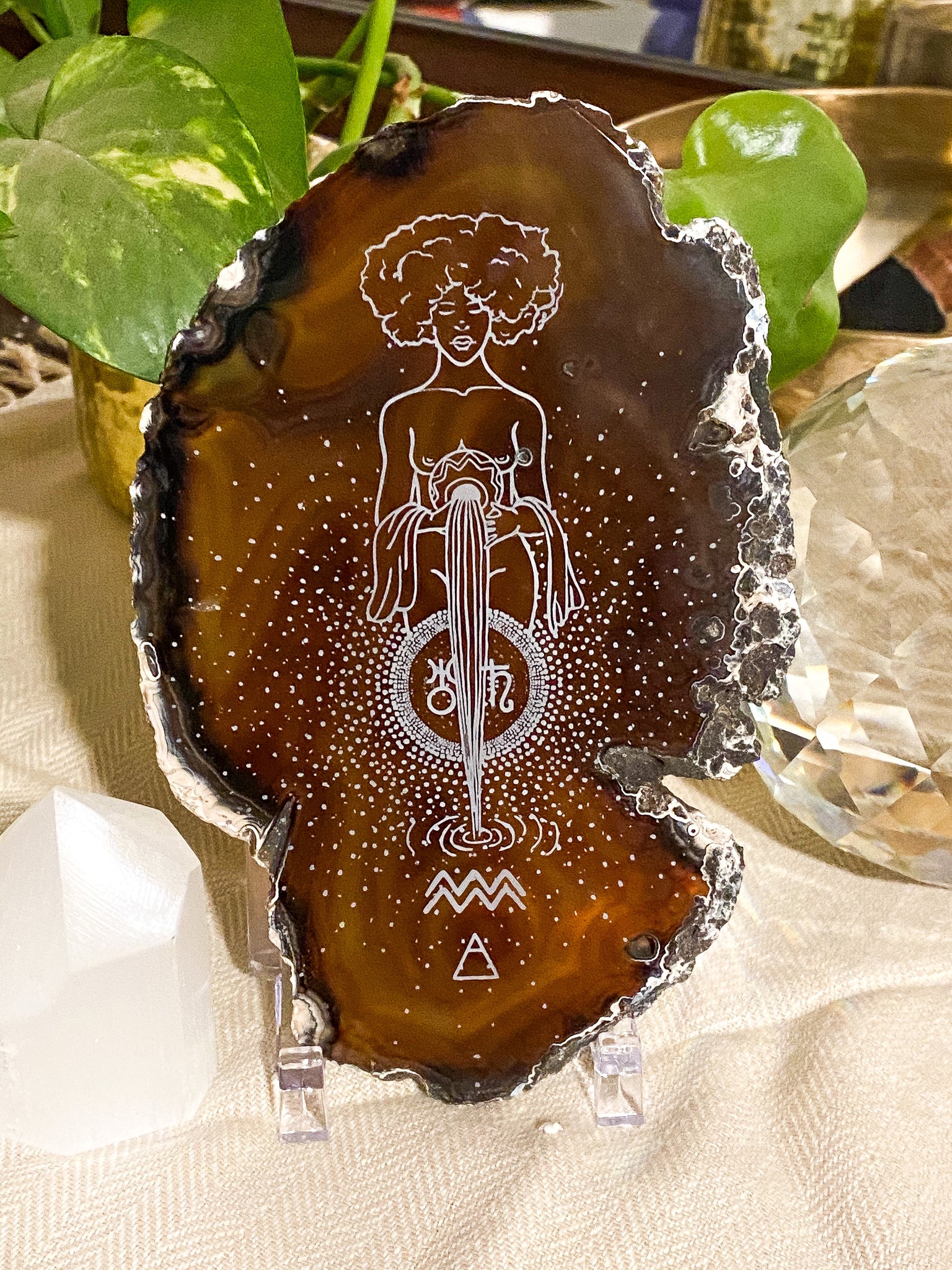 Aquarius “Truth Bringer” Zodiac Goddess Agate Slices - Oblong