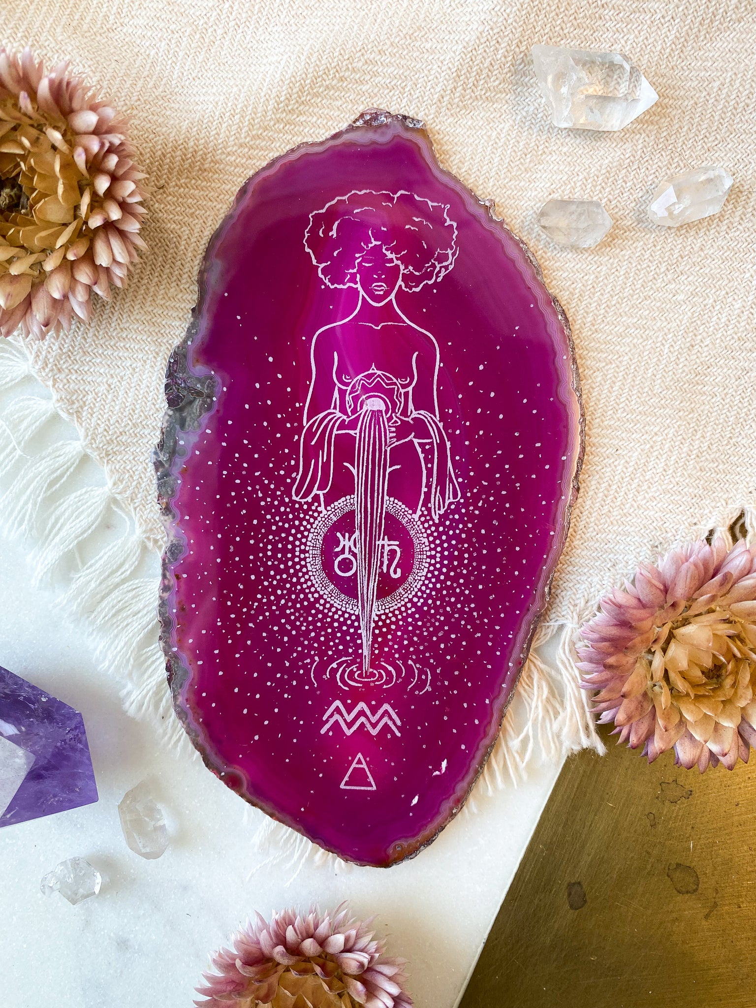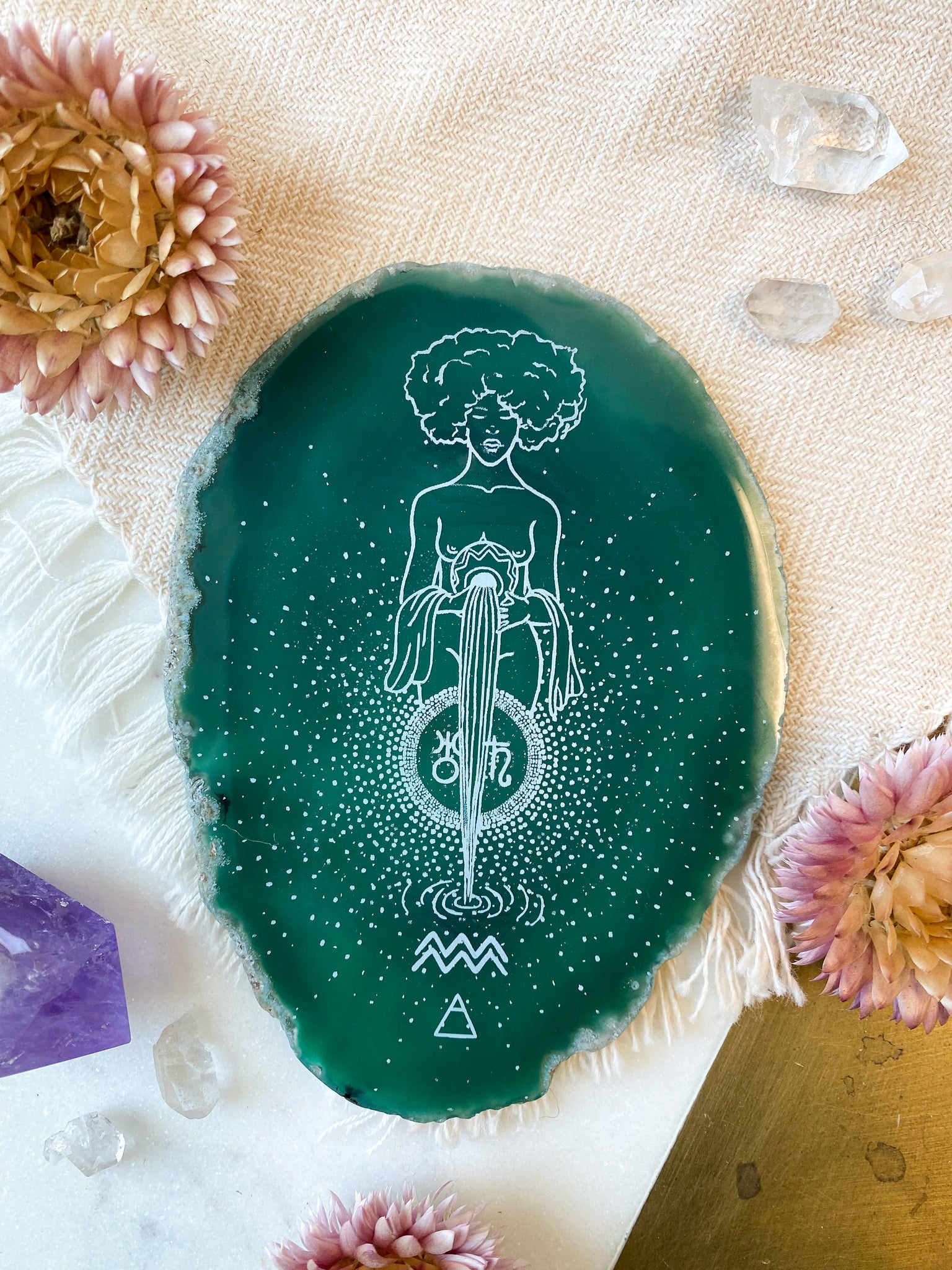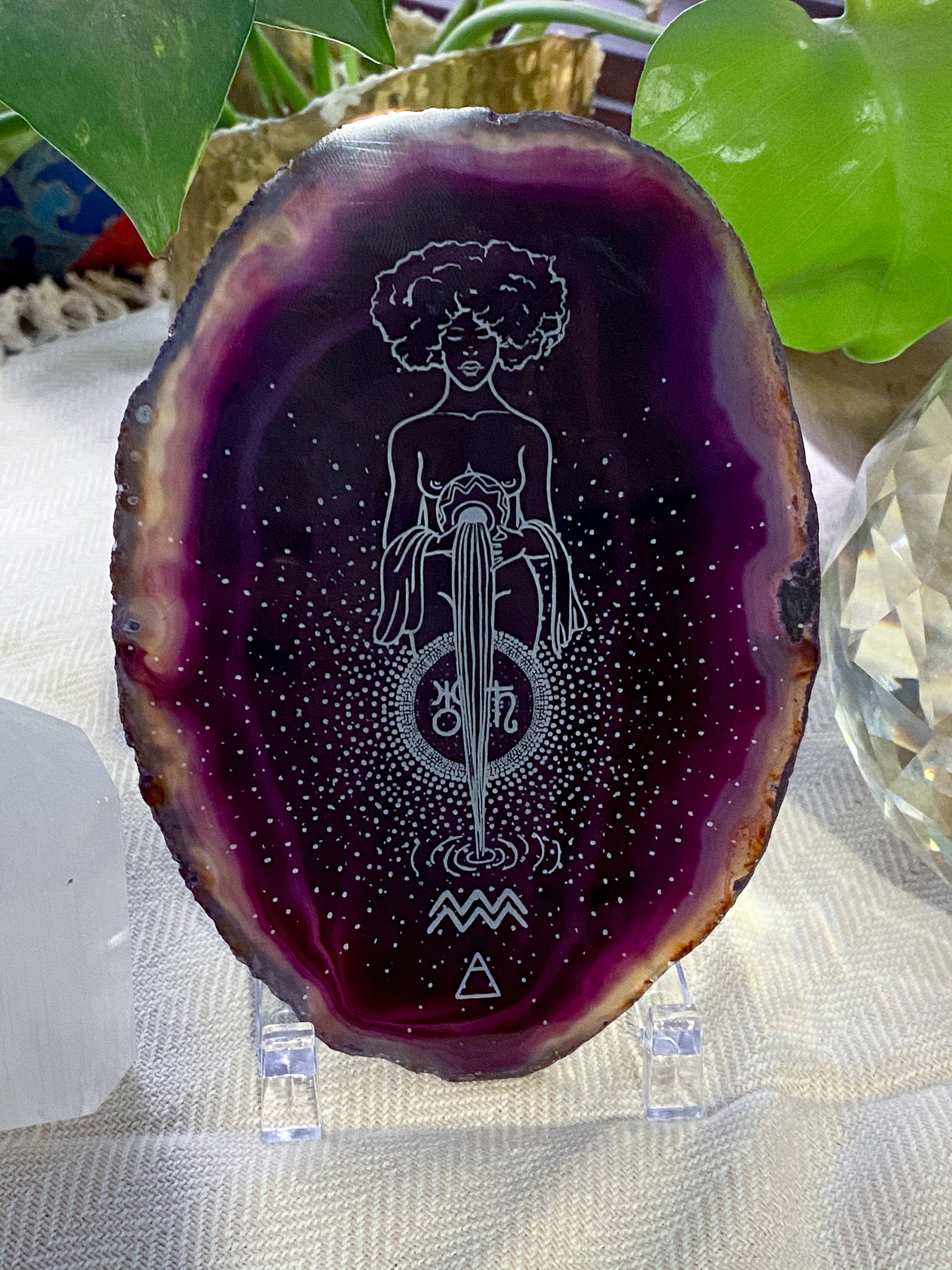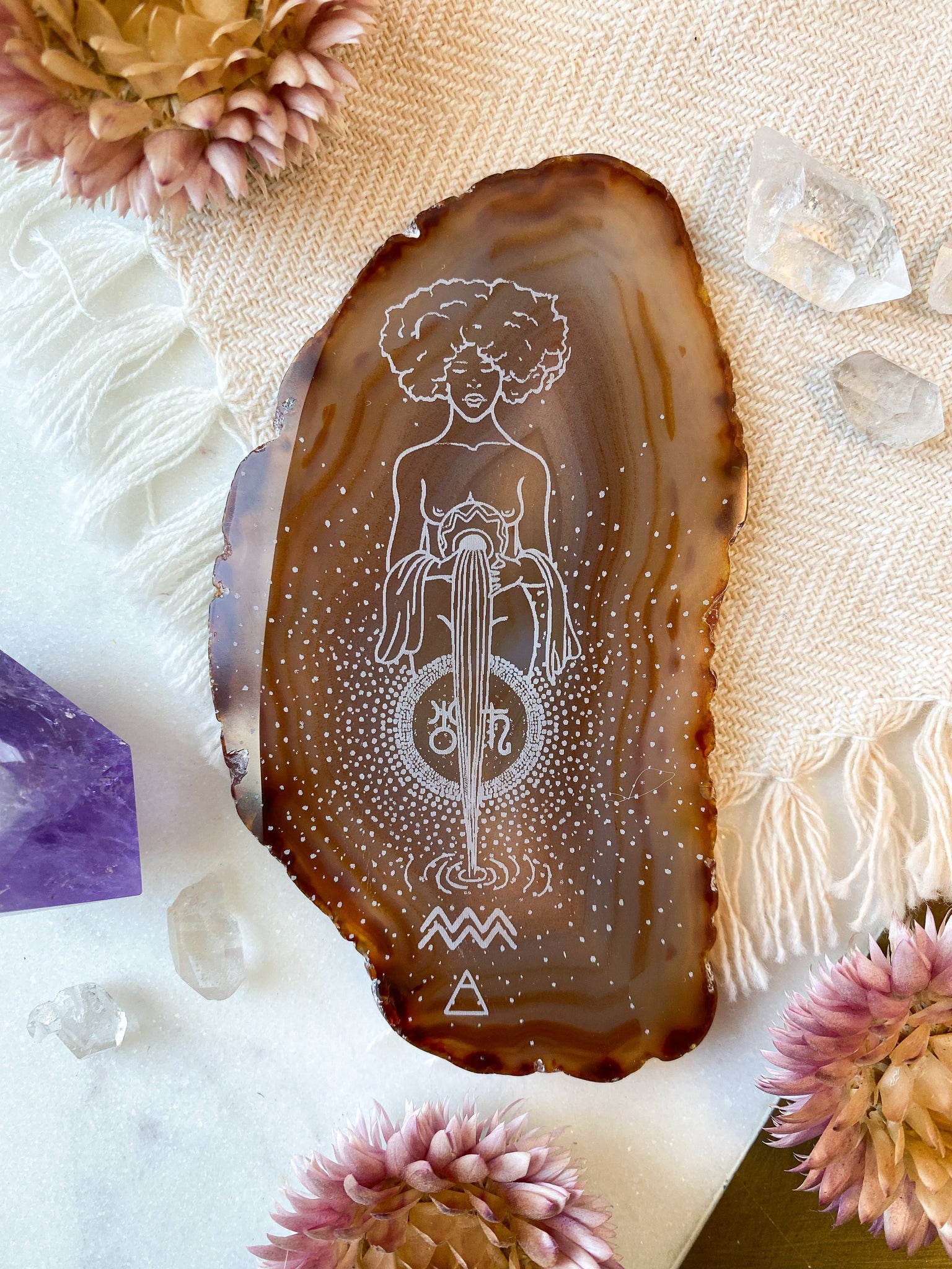 Aquarius “Truth Bringer” Zodiac Goddess Agate Slices - Oblong