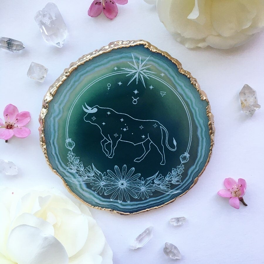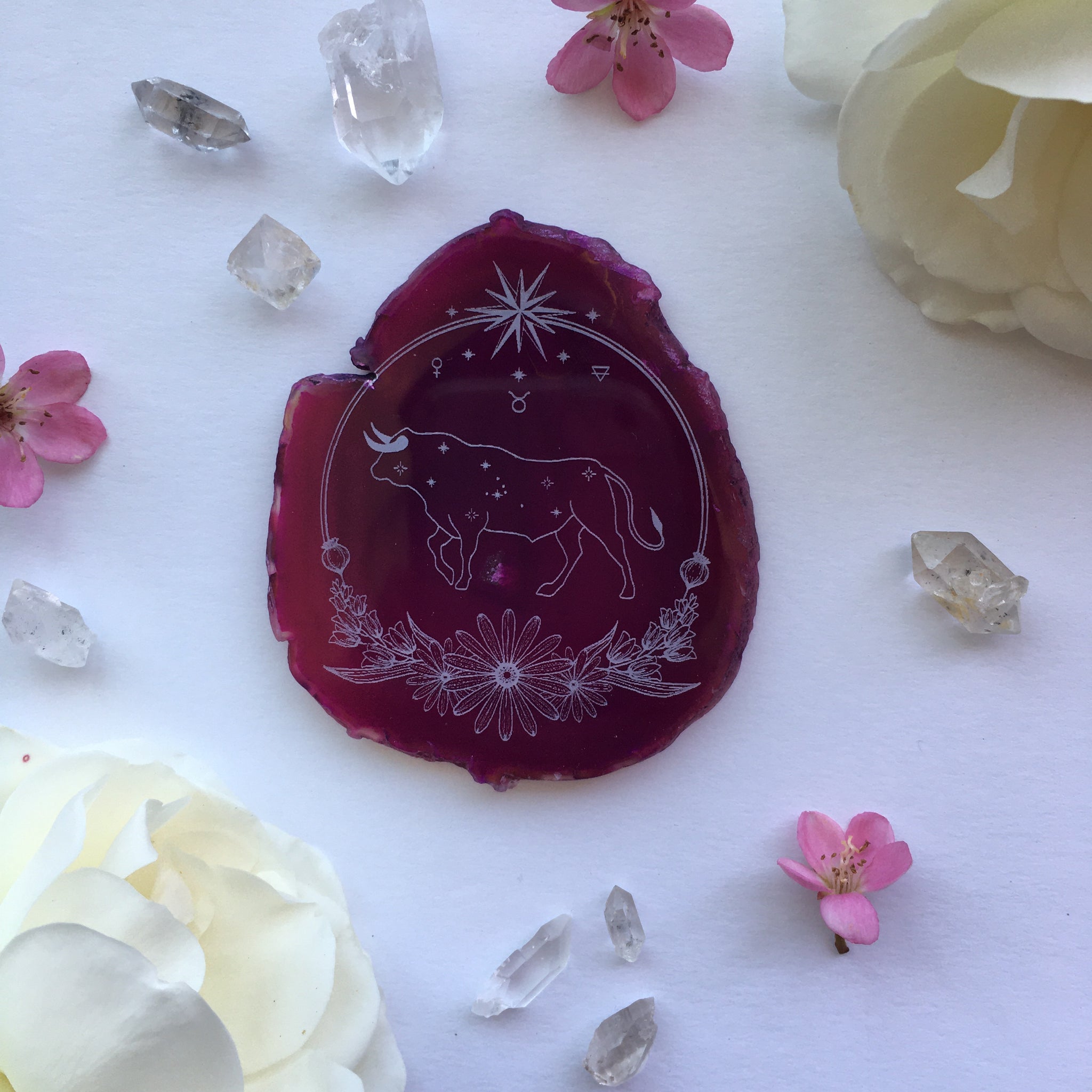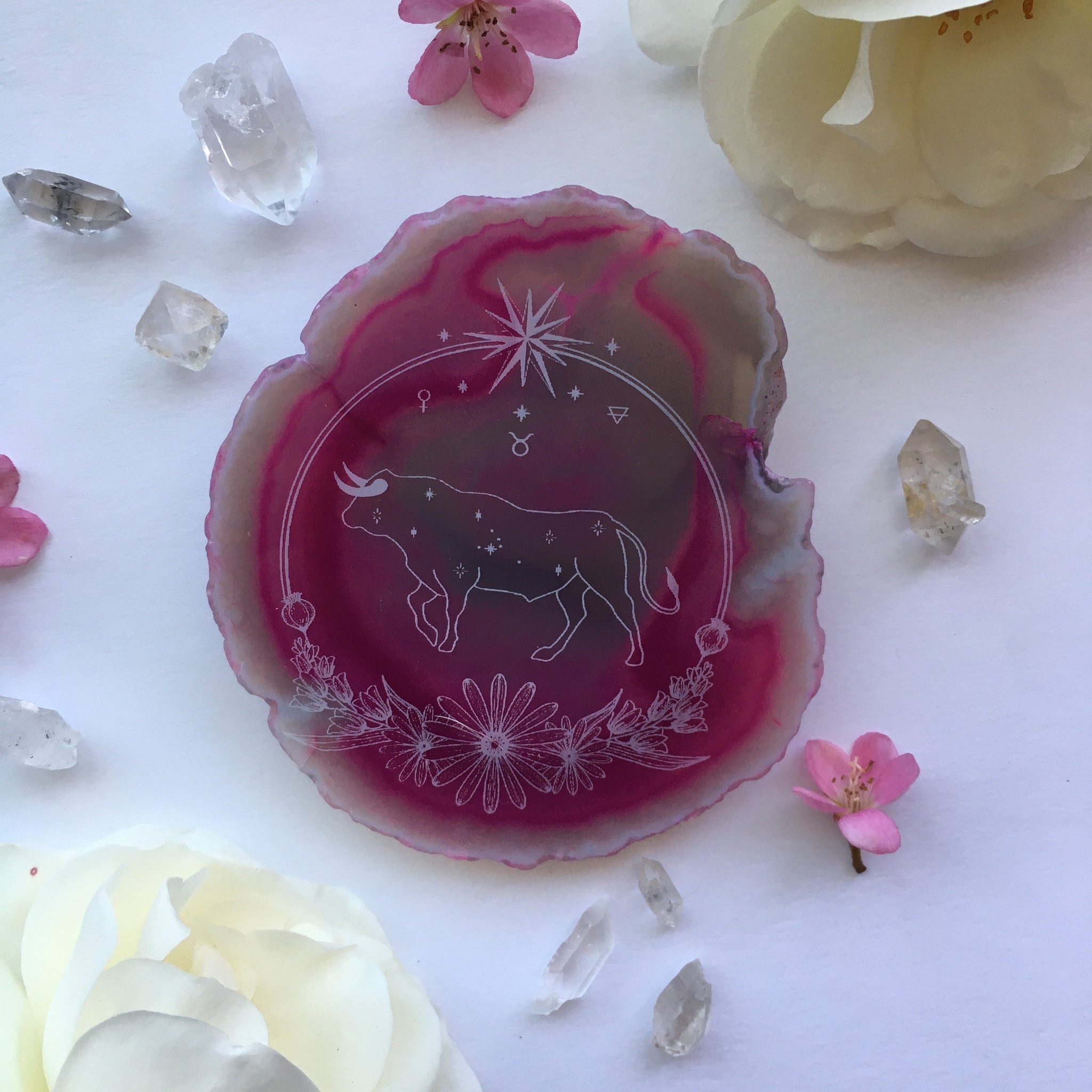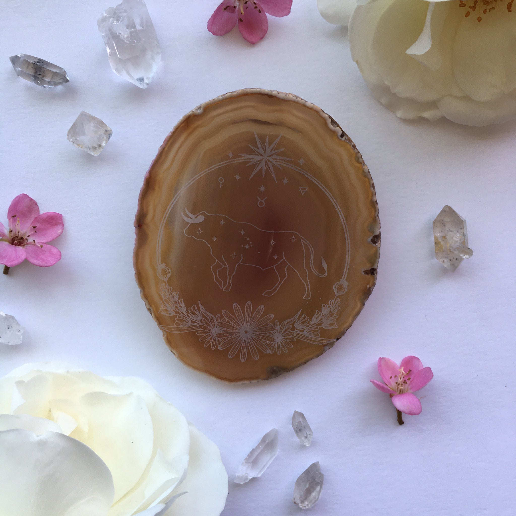 Taurus Season is here! I had so much fun collaborating with tattoo artist @jackie_rye , owner of @betwixt.gallery , for this month’s artwork. She really captured the effortless beauty and Venusian luxe that exemplifies Taurus Energy. Match that with the Queen of all grounding stones, Agates, and you have yourself a solid, stabilizing presence on your altar.