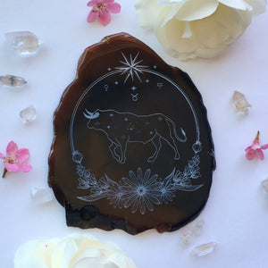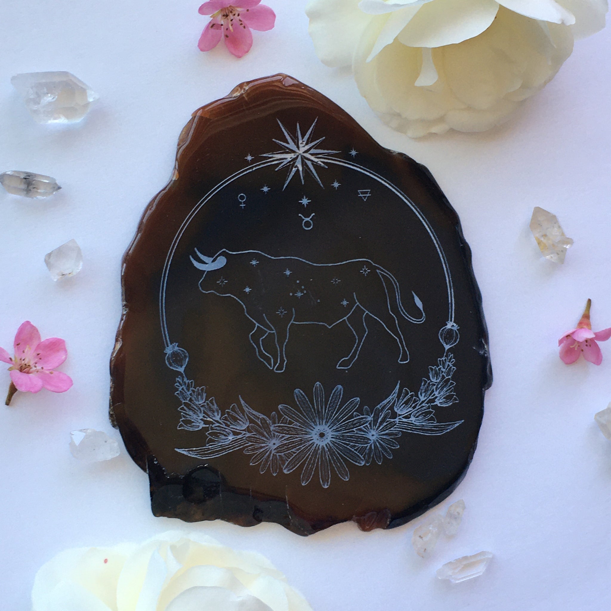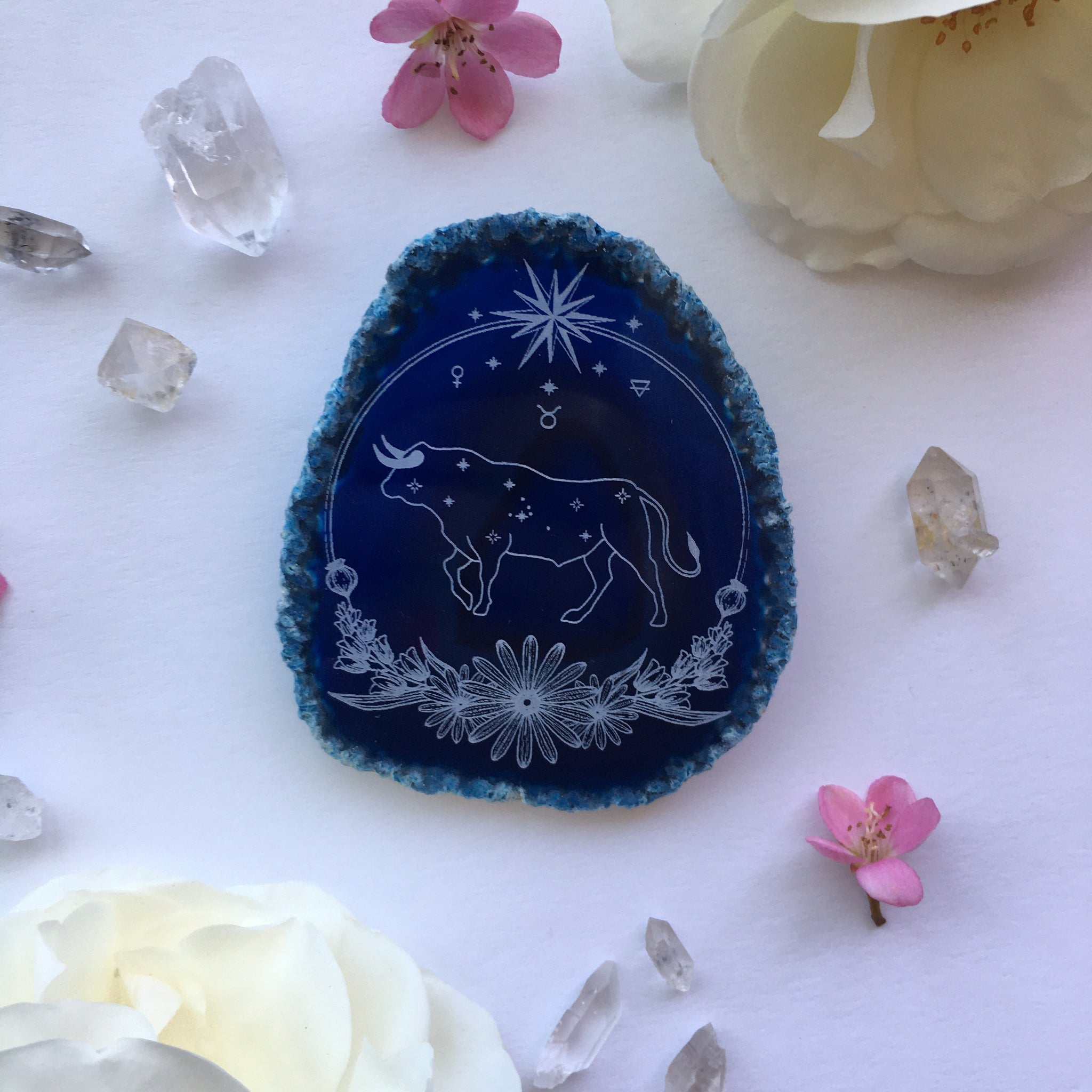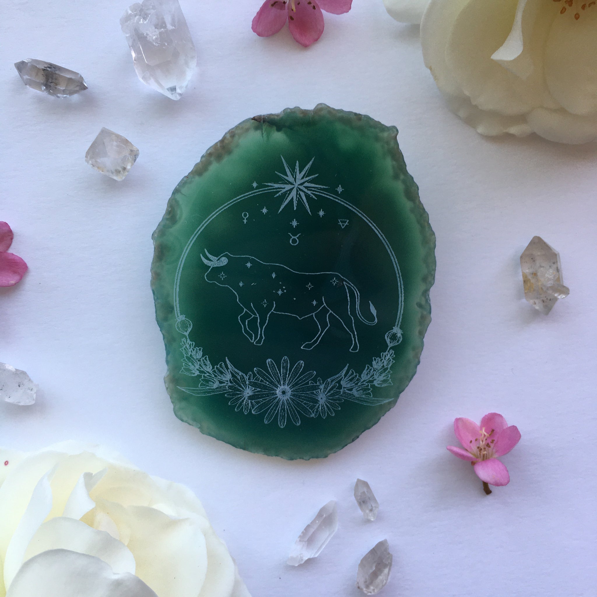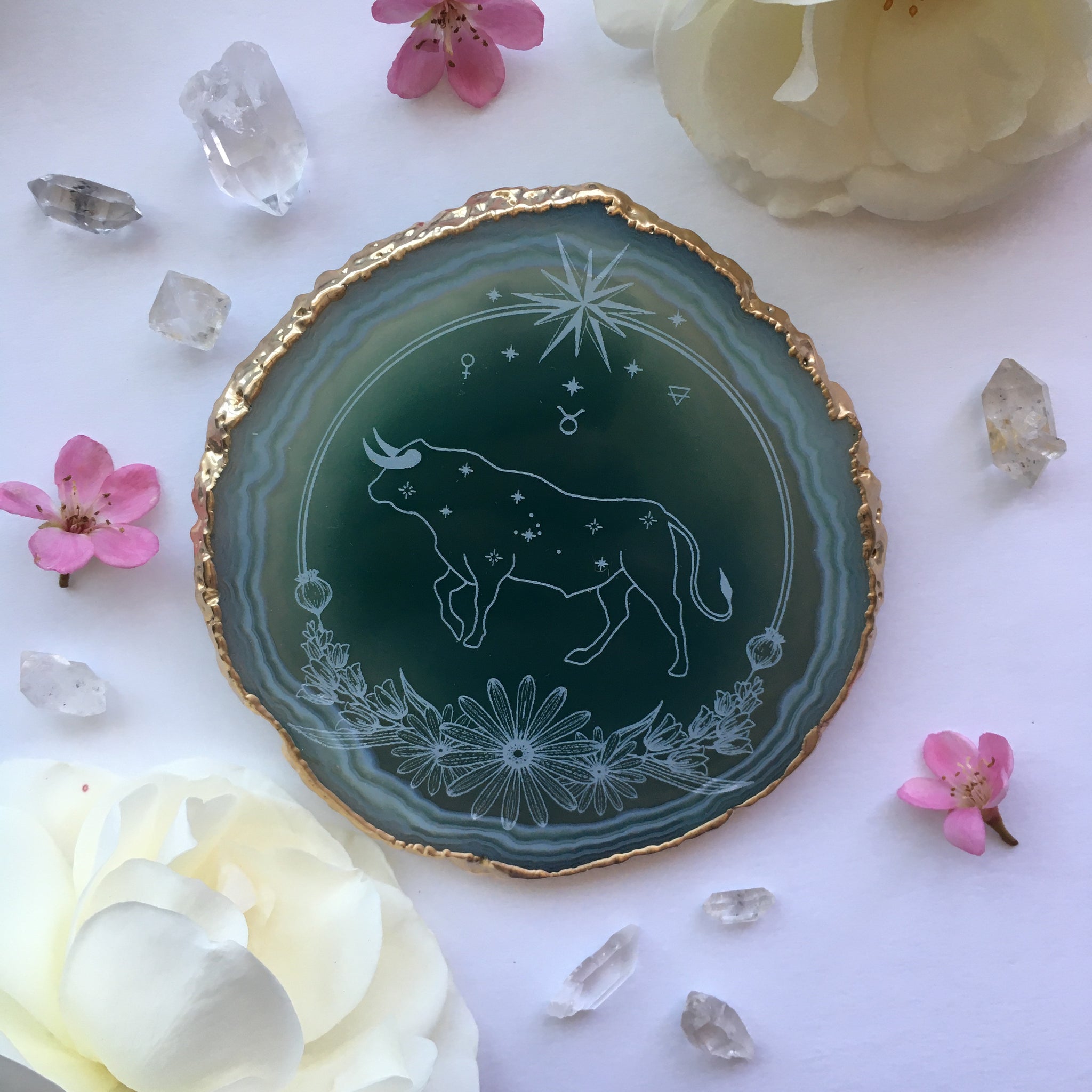 Taurus Season is here! I had so much fun collaborating with tattoo artist @jackie_rye , owner of @betwixt.gallery , for this month’s artwork. She really captured the effortless beauty and Venusian luxe that exemplifies Taurus Energy. Match that with the Queen of all grounding stones, Agates, and you have yourself a solid, stabilizing presence on your altar.