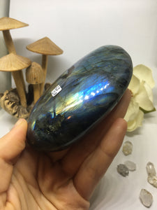 Labradorite is one of the most popular and impressive stones. It has many uses -- activating and grounding one's psychic powers, protection of the aura, and easing social anxiety and depression. In my experience with the stone, I have found that labradorite's fanciful flashes cultivate ones ability to see inner beauty in one's self and in others. It is the process and patience of observing the beauty of labradorite that makes it so powerful. While some stones are obviously beautiful from any angle, in any light, others require a deeper look. One must search for the colorful iridescence by viewing it from all angles and many different shades of light. When the rainbow light flashes back at the viewer it instantly invokes joy, and one cannot help but fall madly love with the stone.