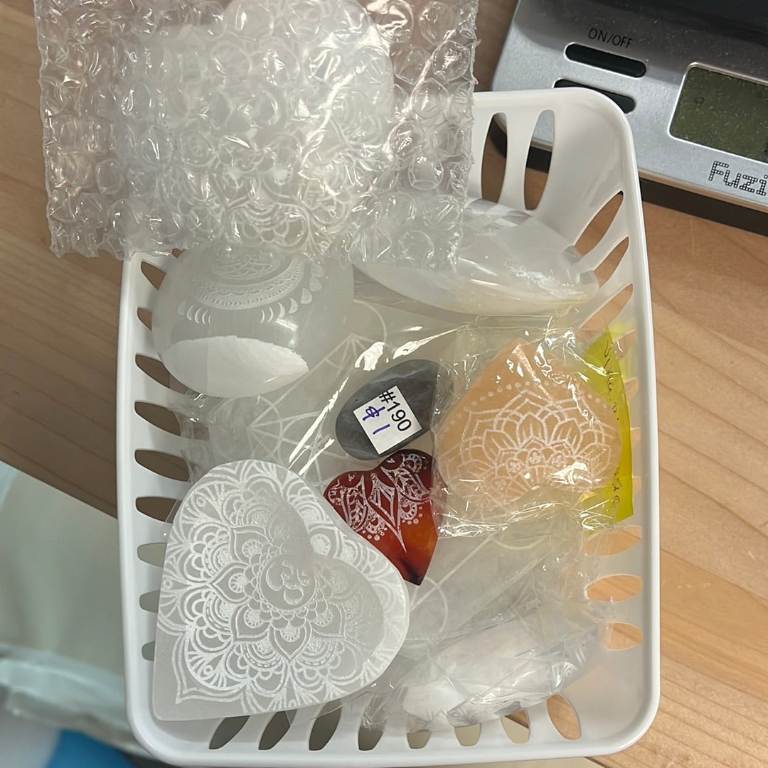 large selenite heart/palm stone x3 $8