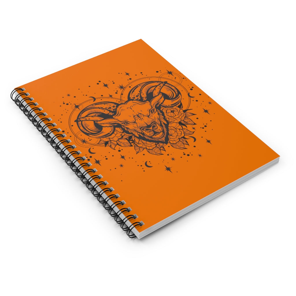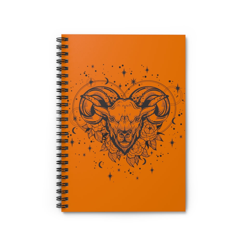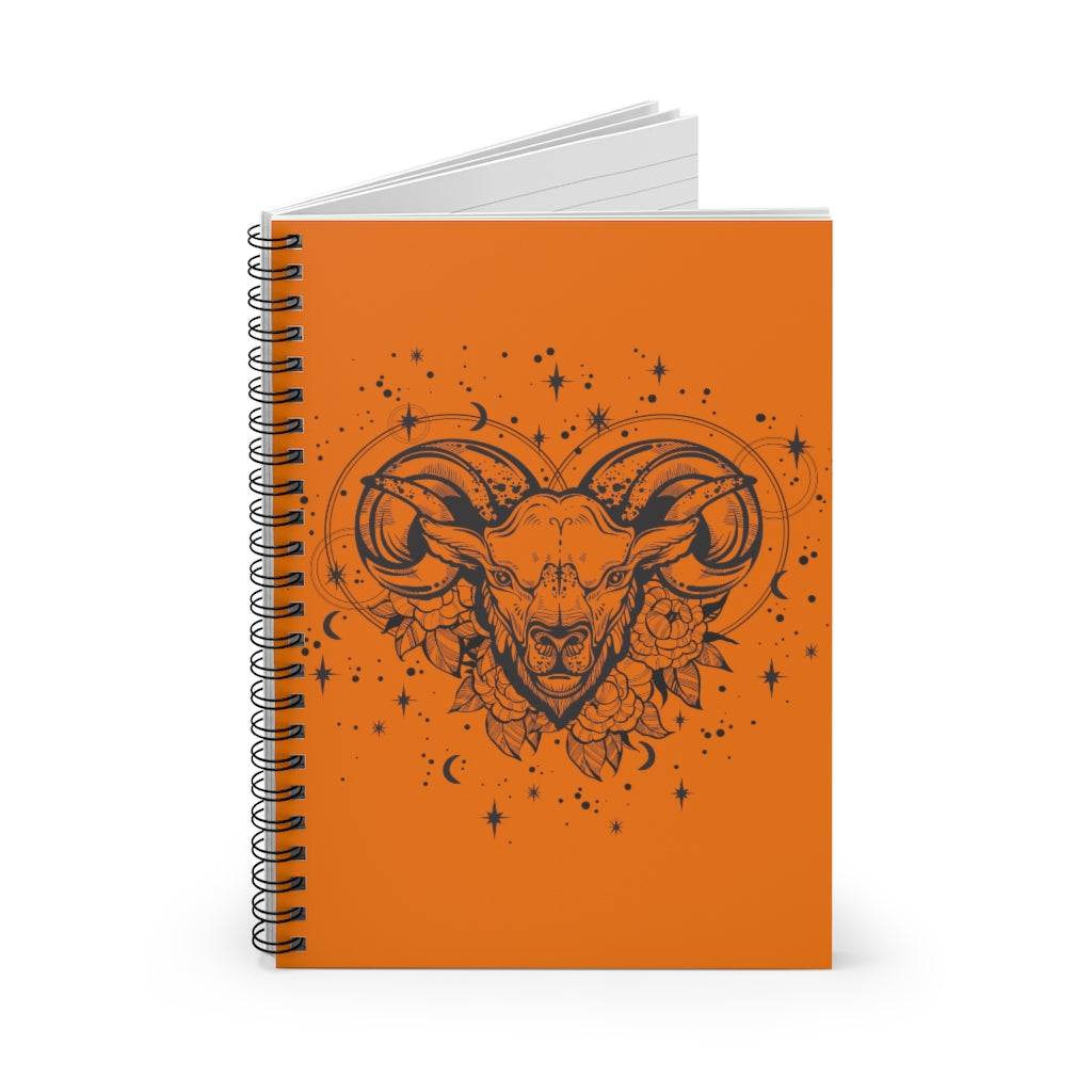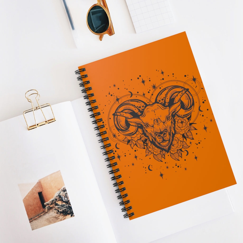 Aries Ram "Aries Renewal" Zodiac Astrology Spiral Notebook in Spanish Orange