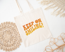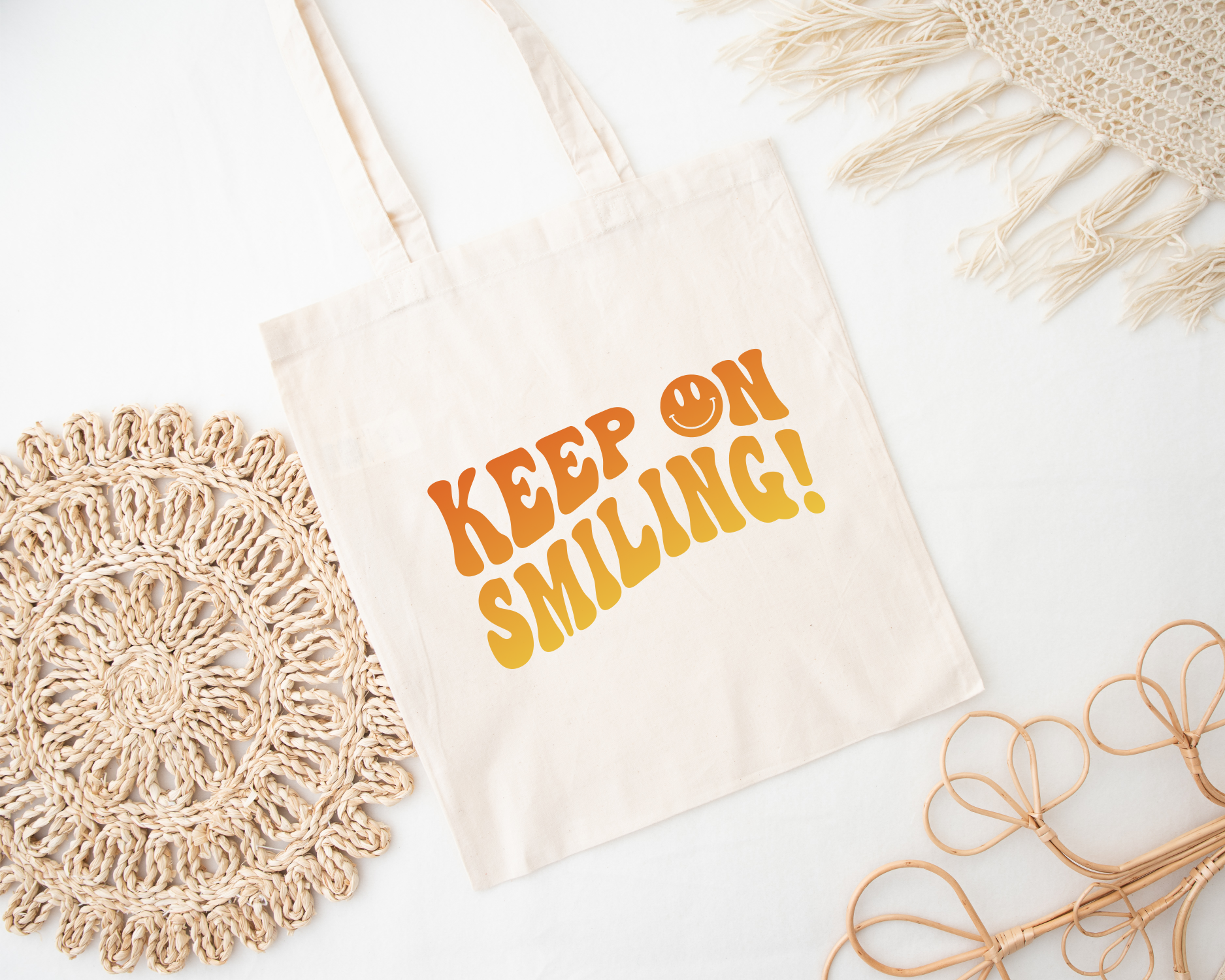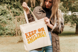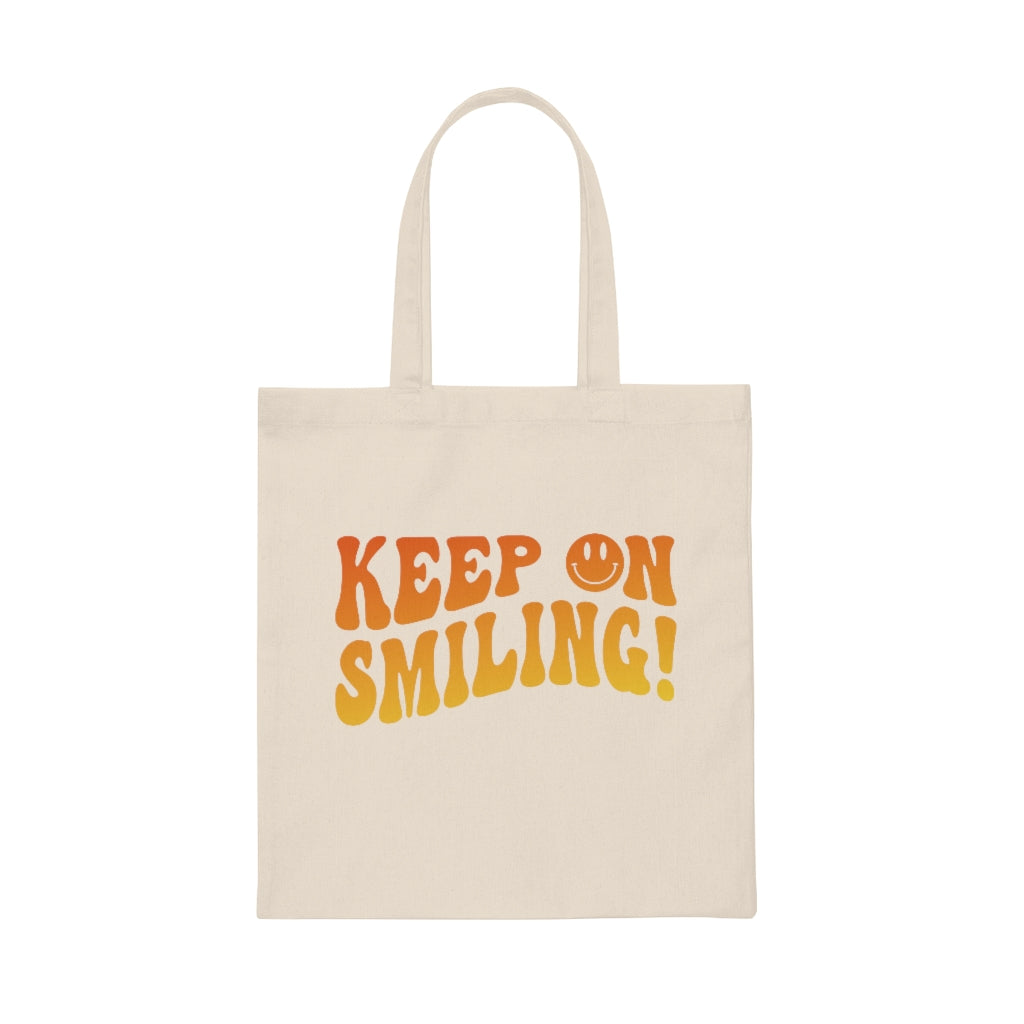 Keep on Smiling Red-Orange Gradient Canvas Tote Bag