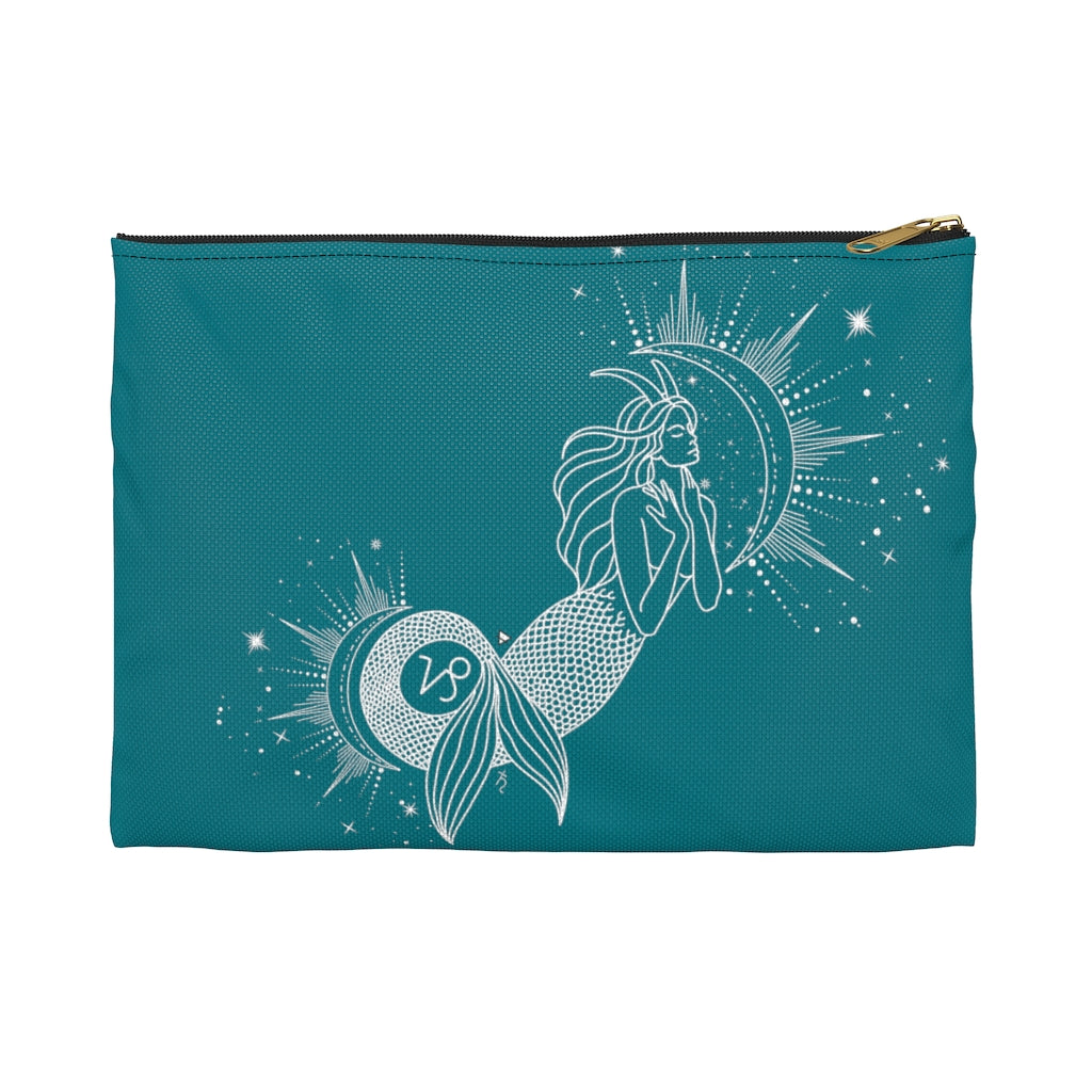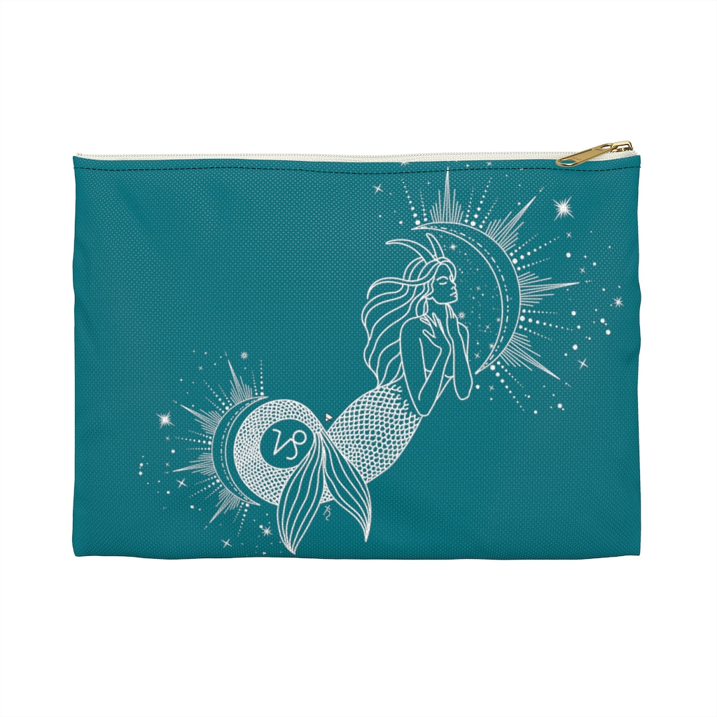 Capricorn "Ambition" Mermaid Goddess Sea Goat Teal Accessory Pouch