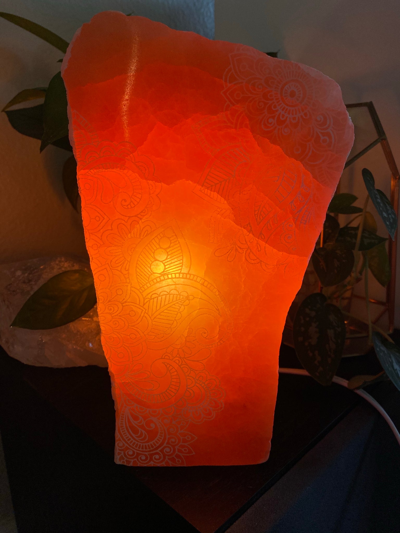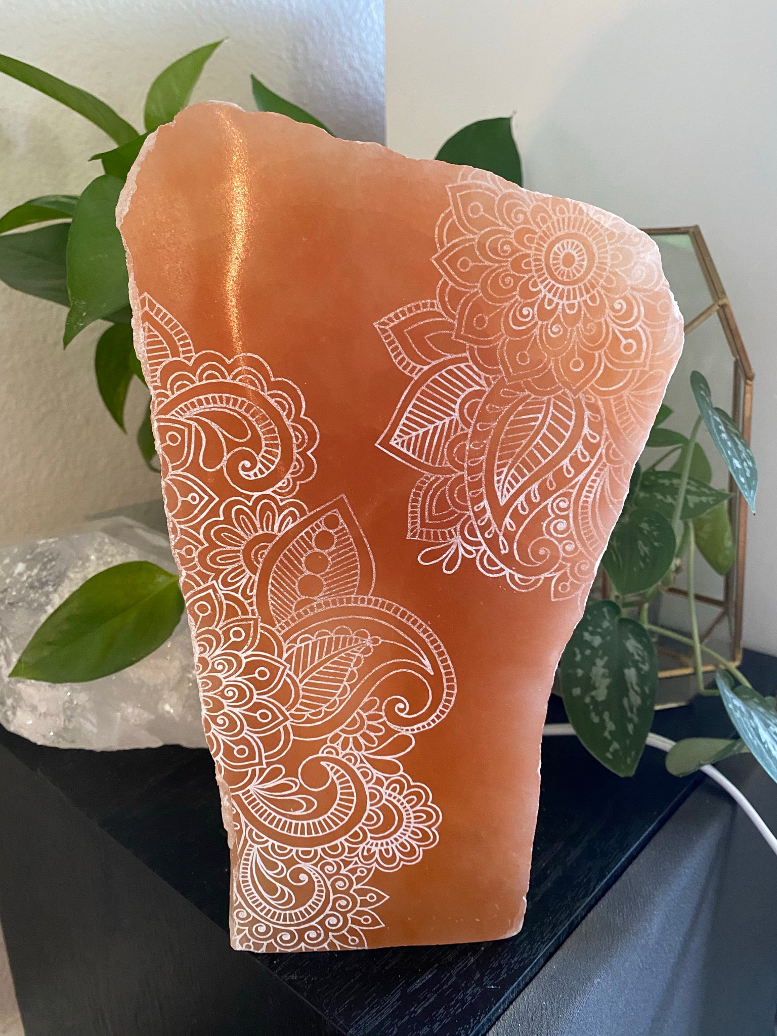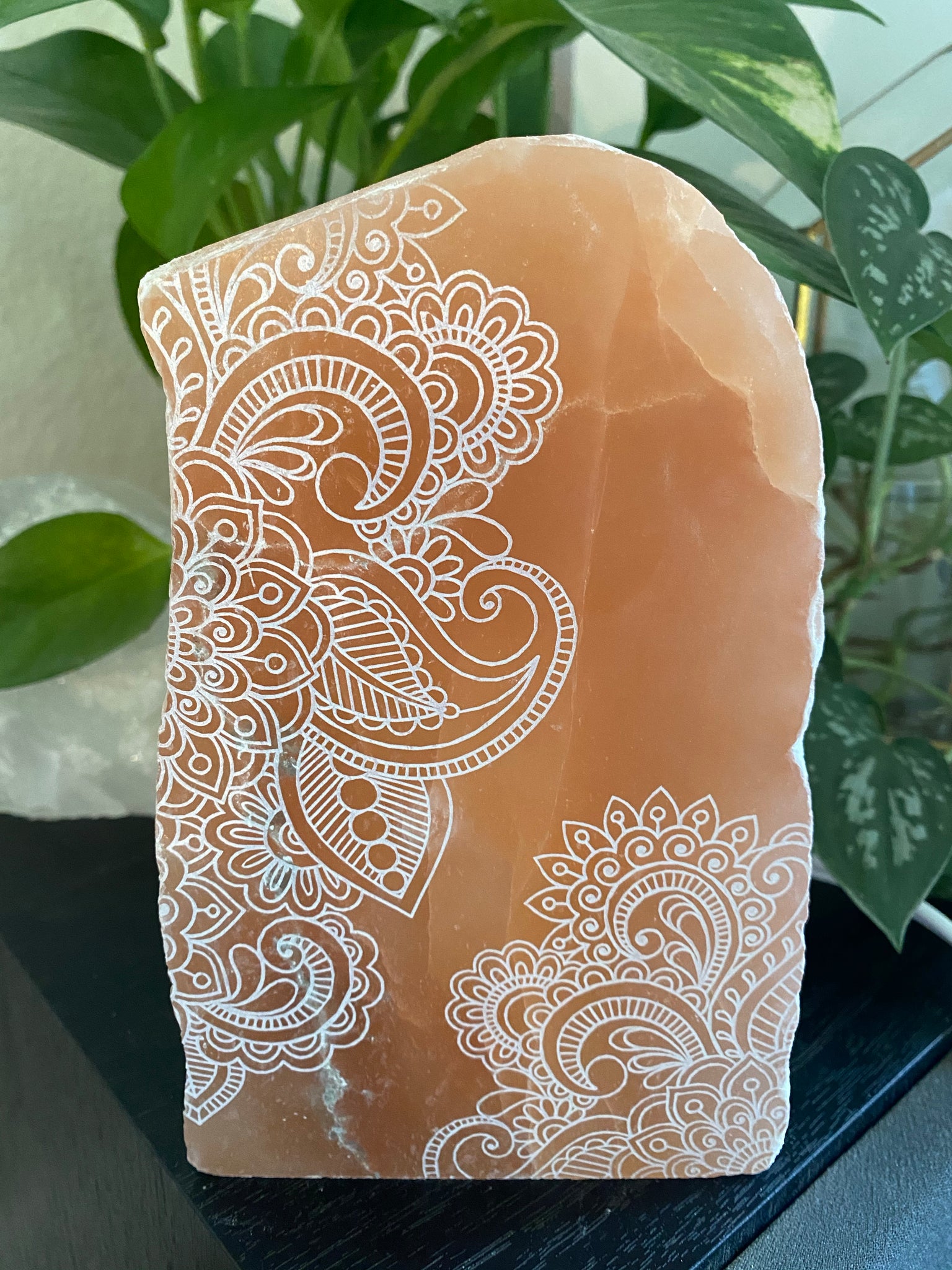 These Peach Selenite Lamps are organically shaped and produce a warm, soothing glow. They are perfect for any room in your home and would even serve as a perfect night light. Includes cord with switch and lightbulb.