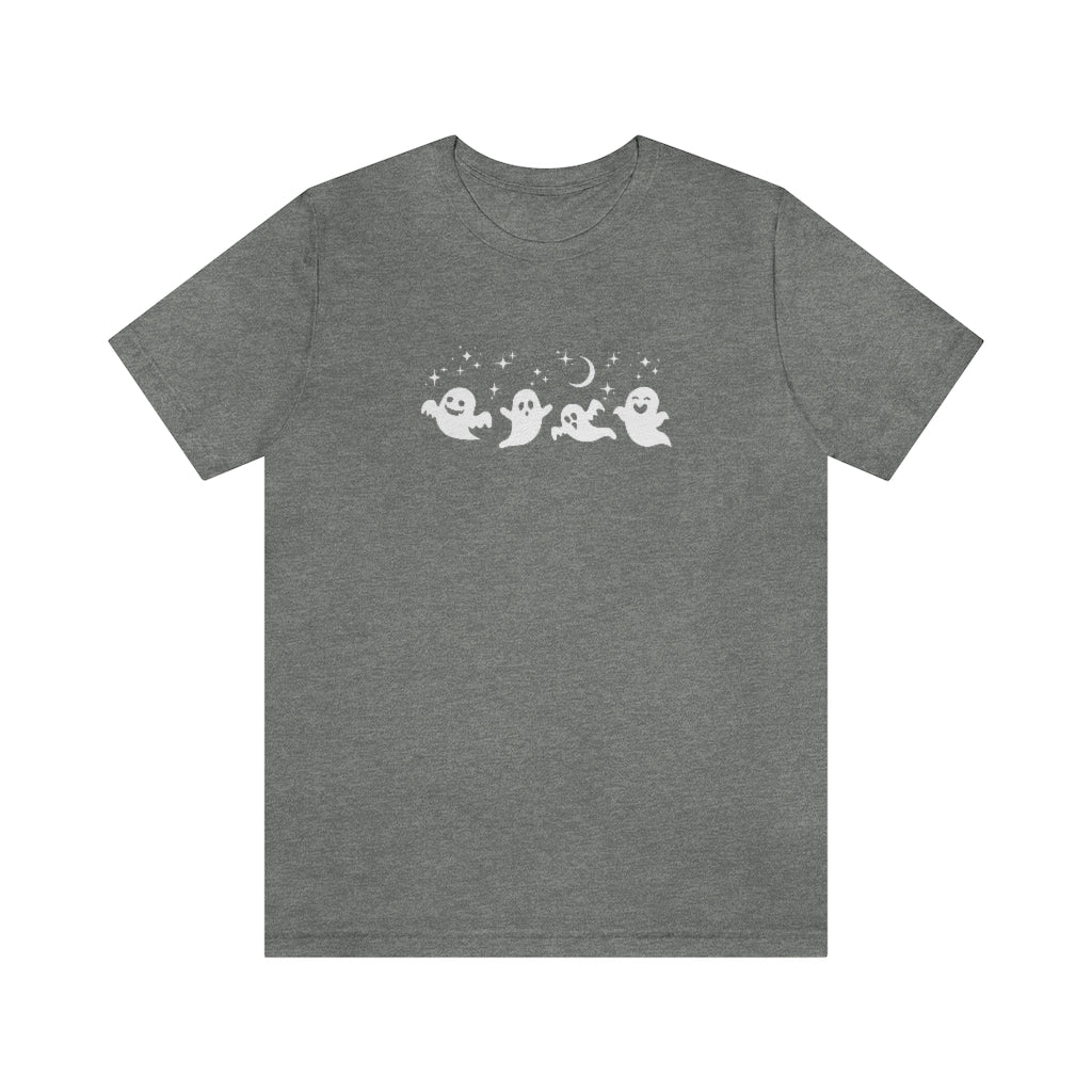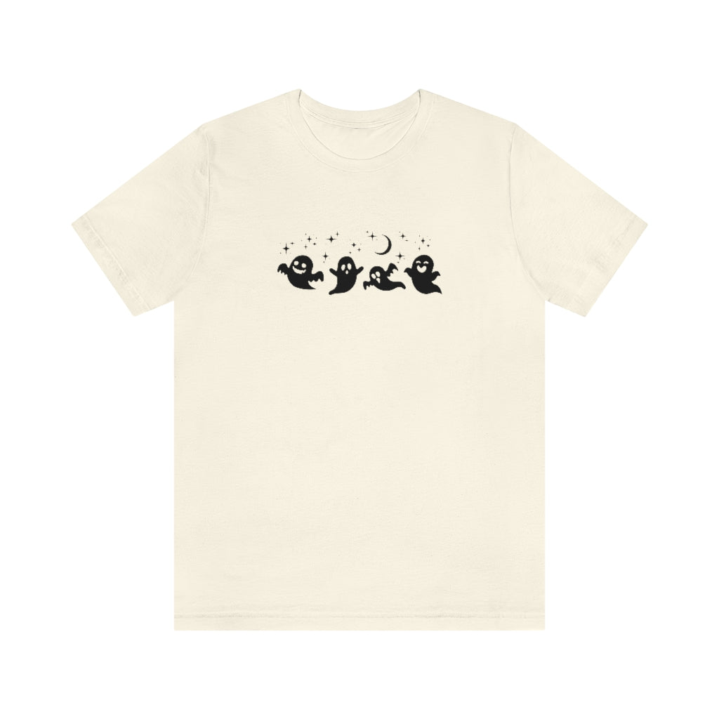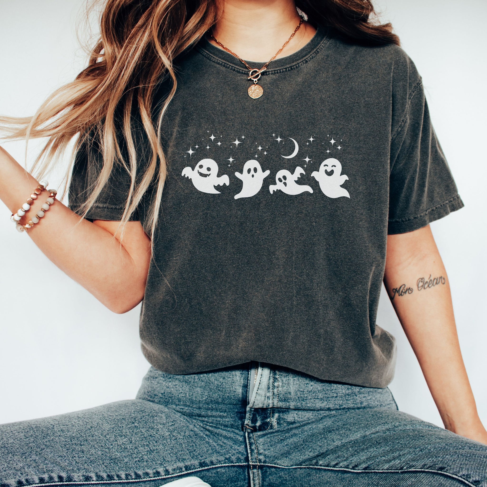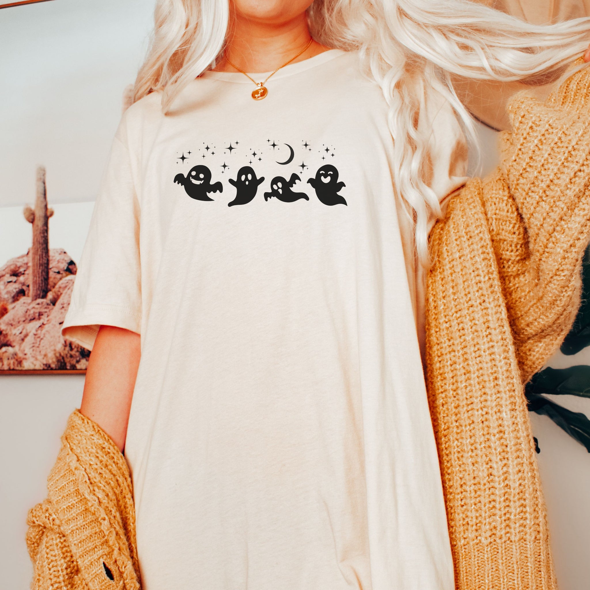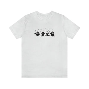Stay Spooky all Halloween season long with this adorable t shirt featuring 4 silly Ghosts dancing in the stars and moonlight.