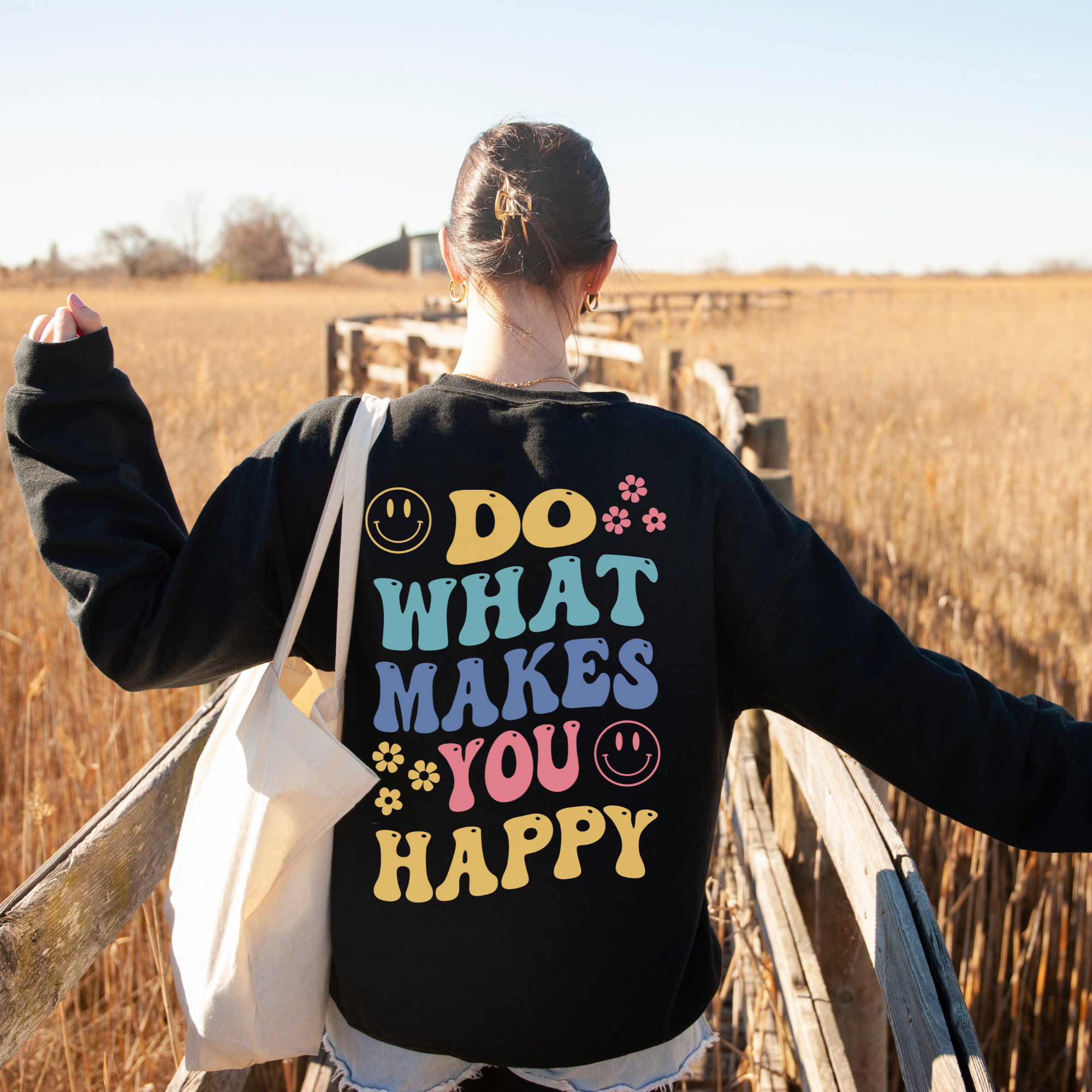 Do What Makes You Happy Back Print Crewneck Sweatshirt