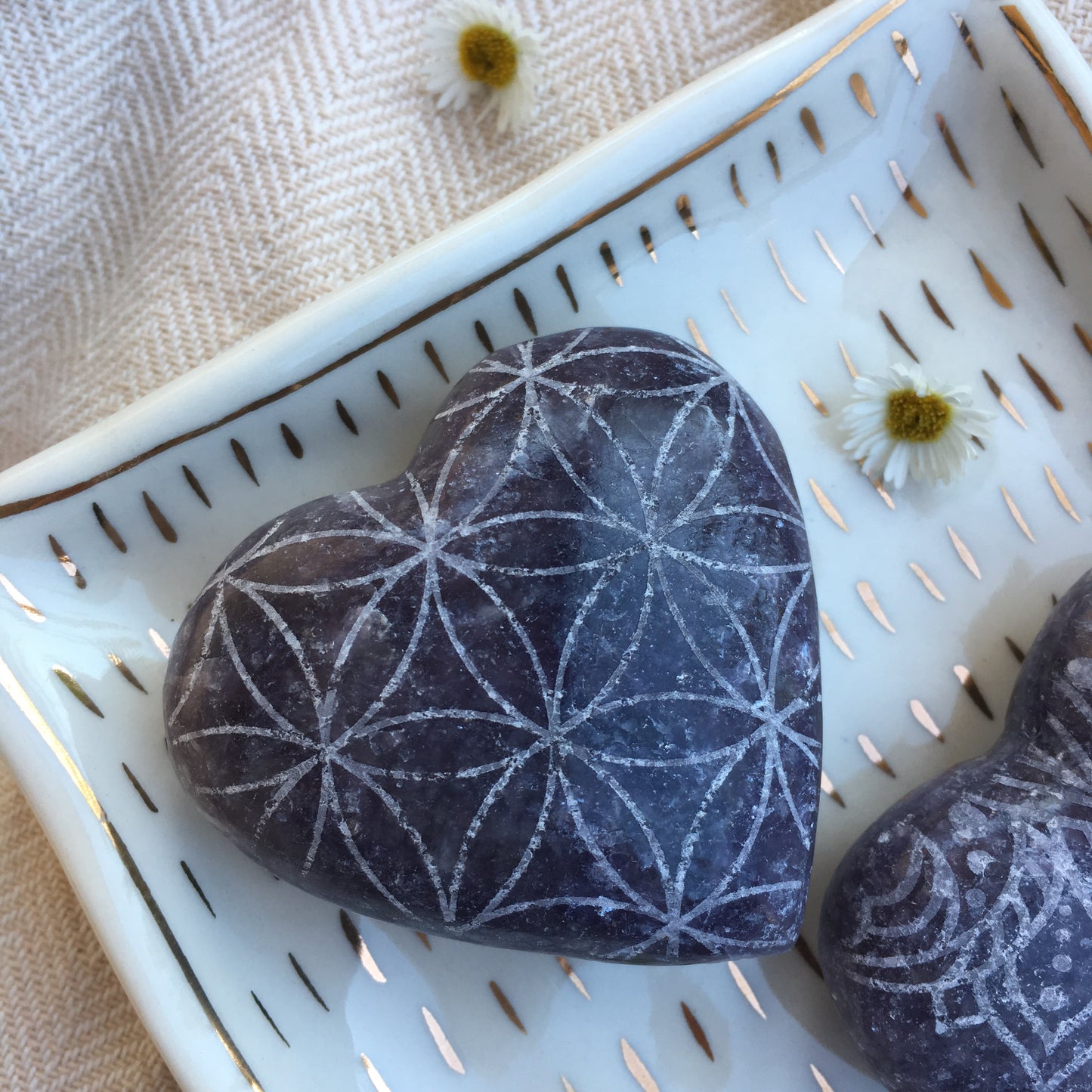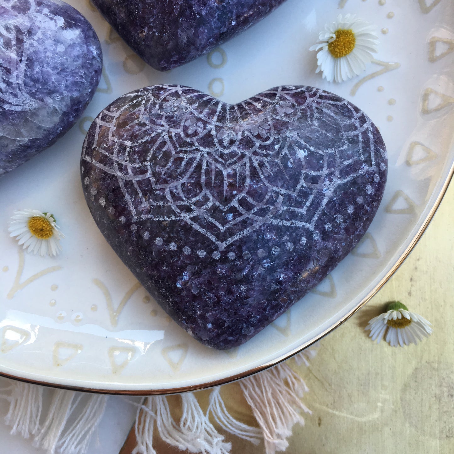 Lepidolite is arguably one of the most soothing stones. It contains trace amounts of lithium, which helps calm the mind and get you back into your heart space. These hearts are perfect for meditation or altar decor.