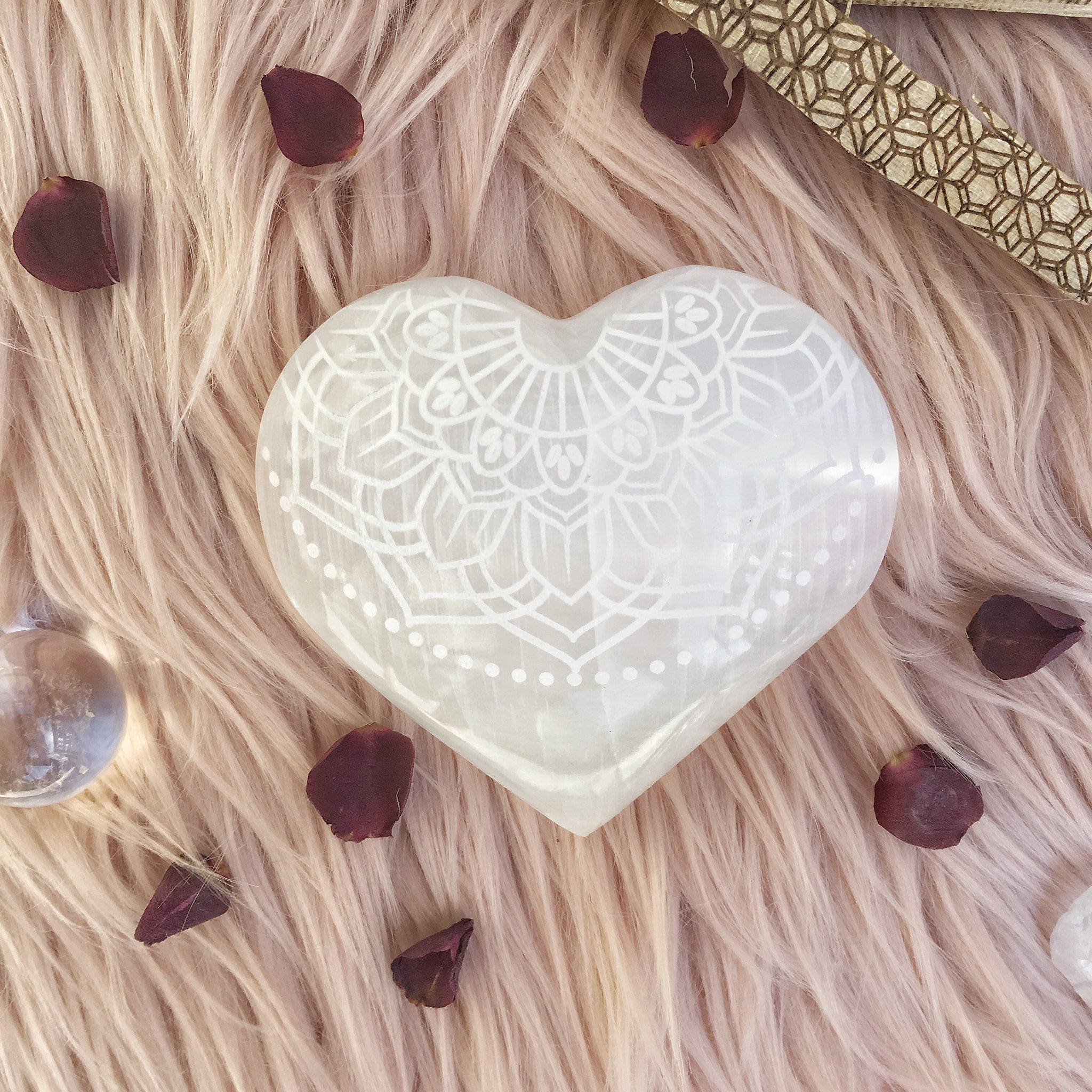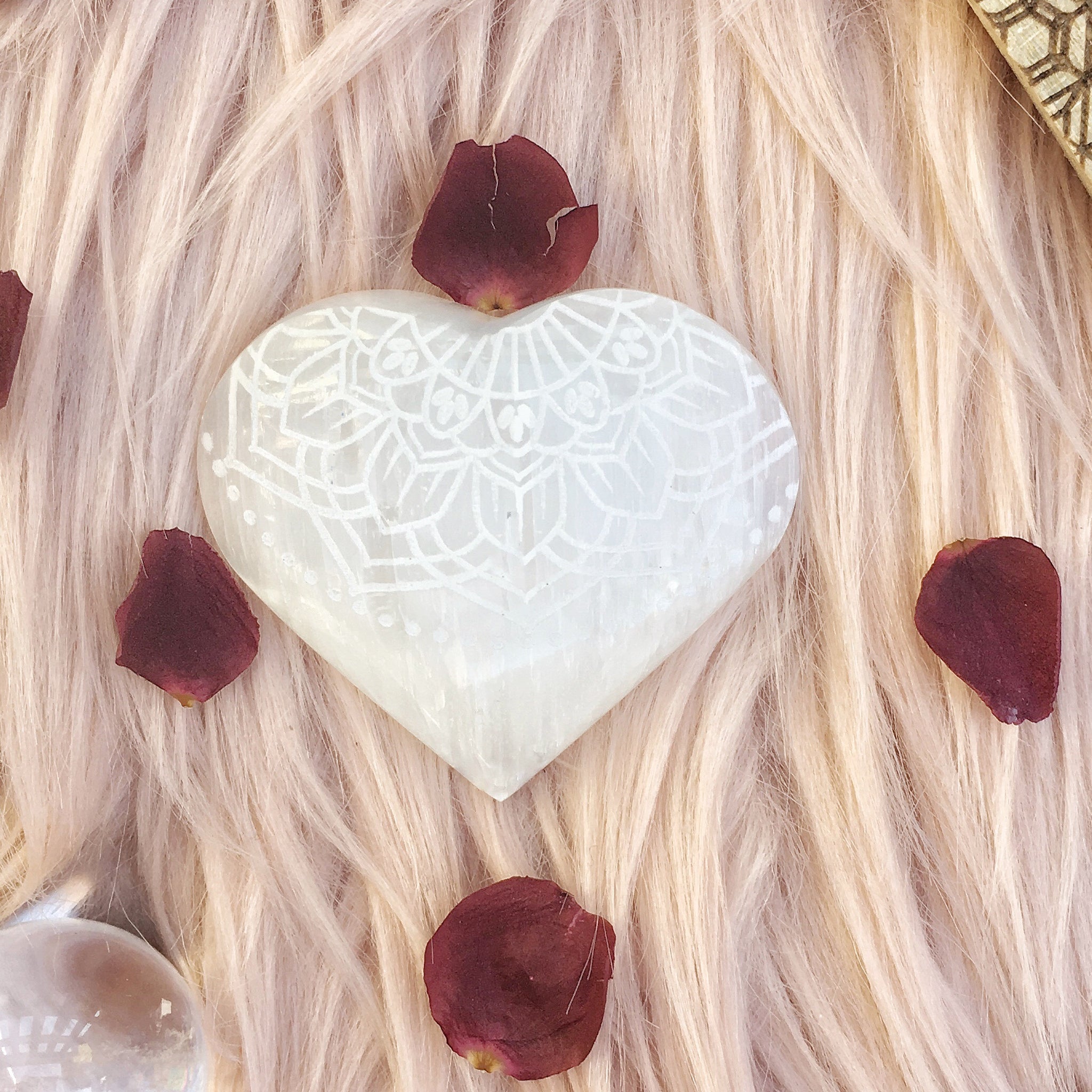 Etched Selenite Heart "Radiate Bliss" *CLEARANCE* 2ND QUALITY OR DAMAGED - FINAL SALE