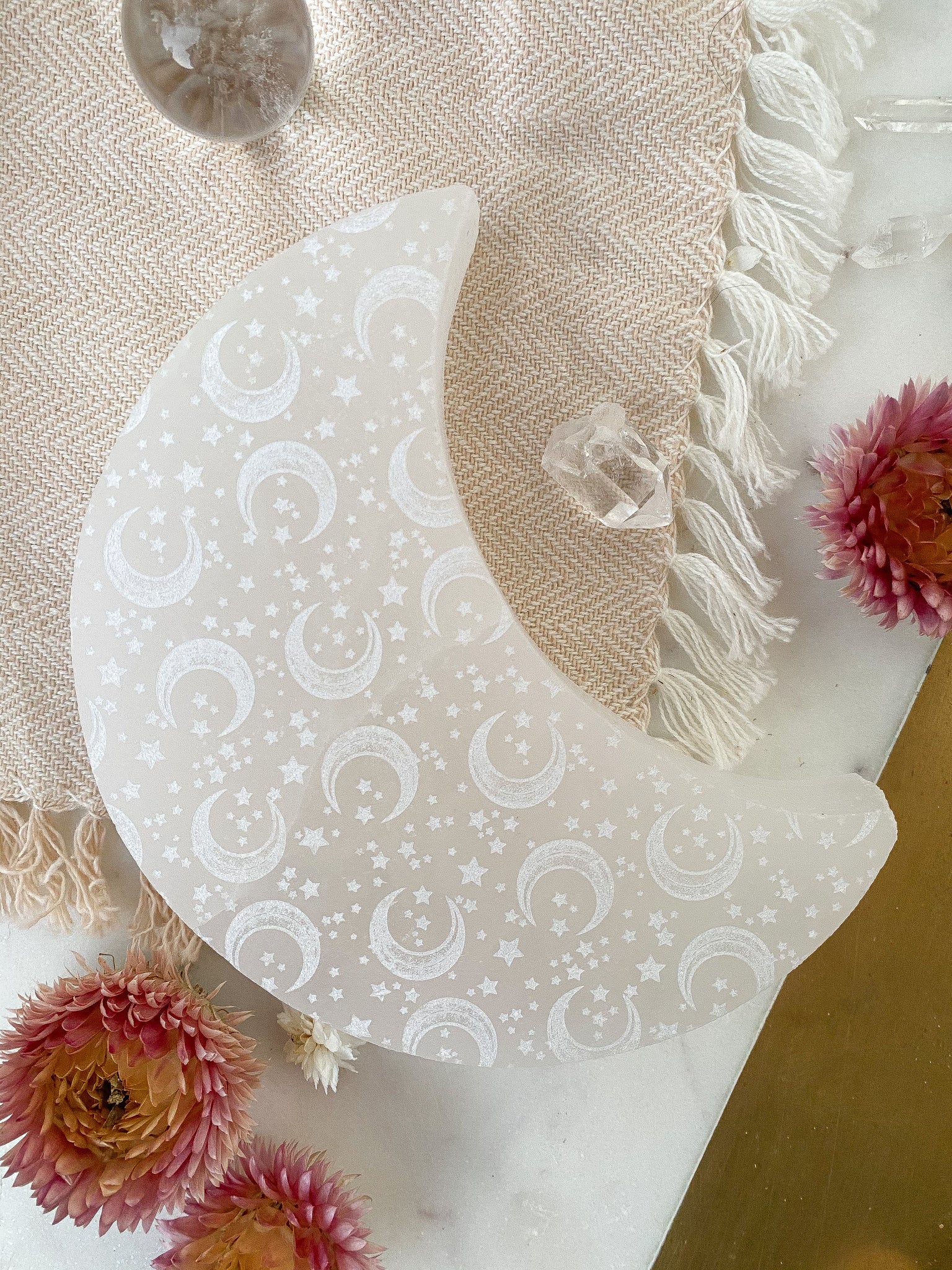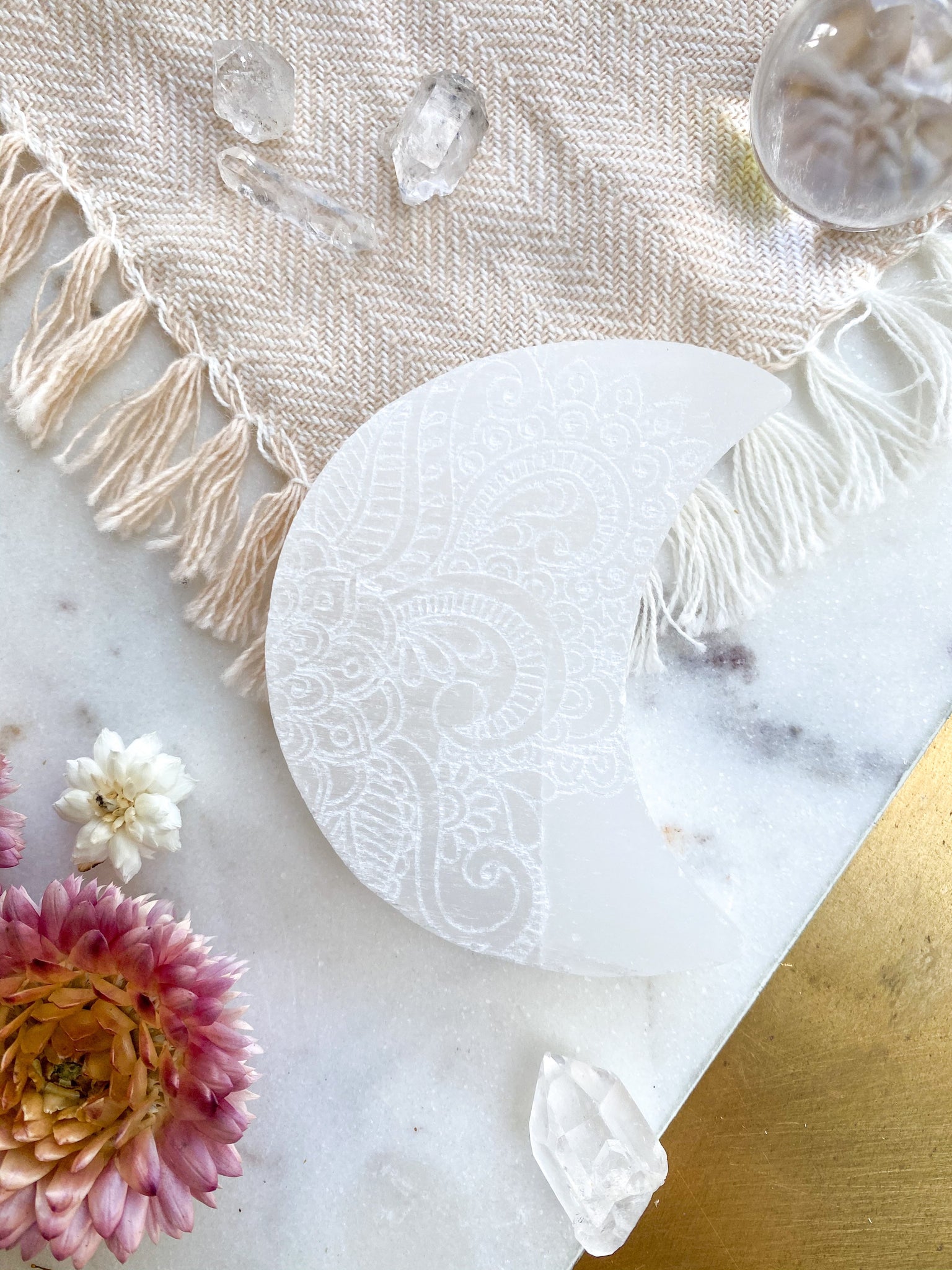 *FREE with $100 Purchase* Henna Or Celestial Bodies Crescent Moon Selenite Charging Pedestal