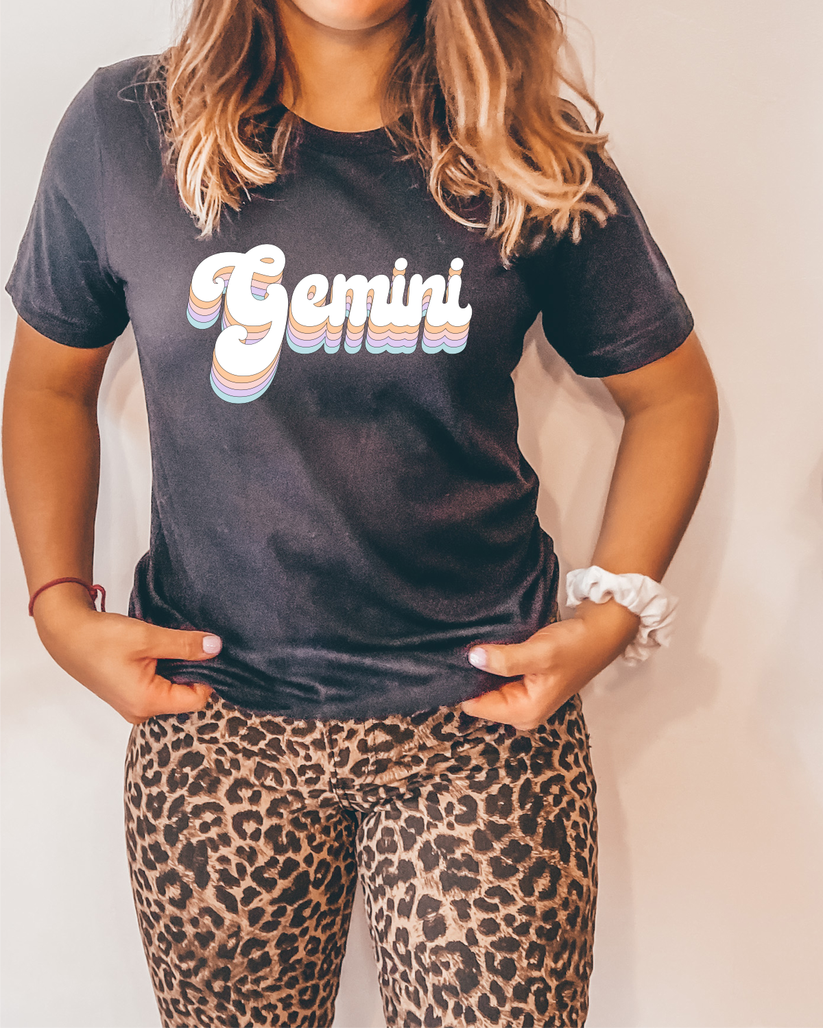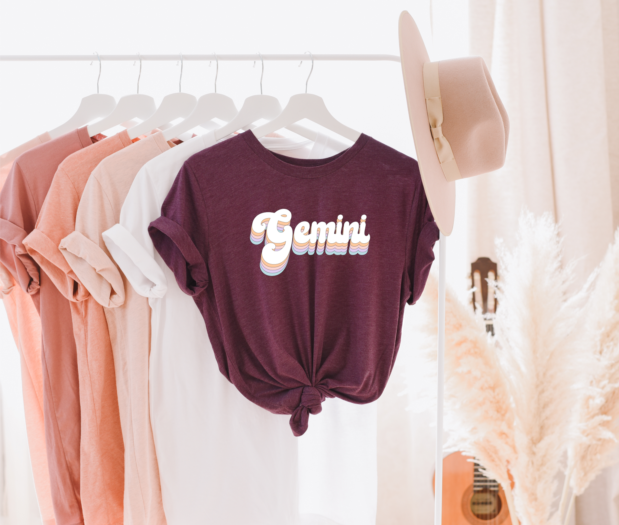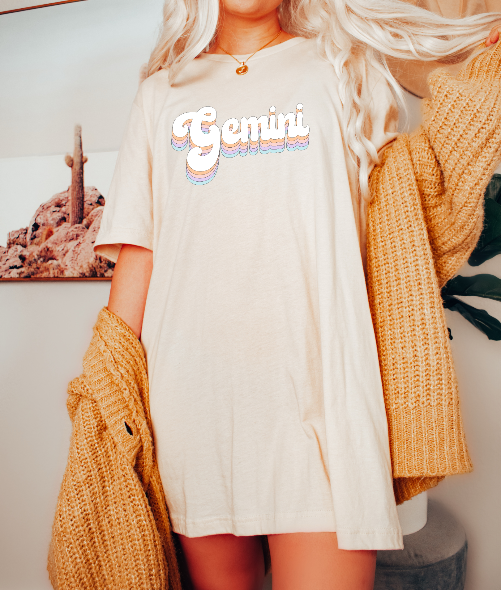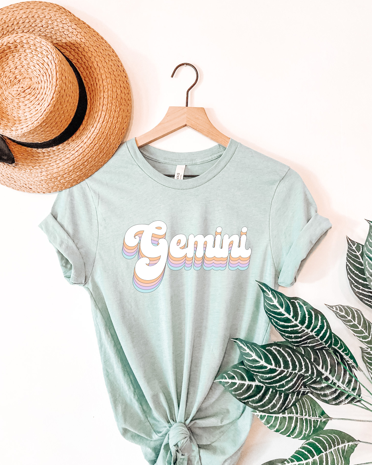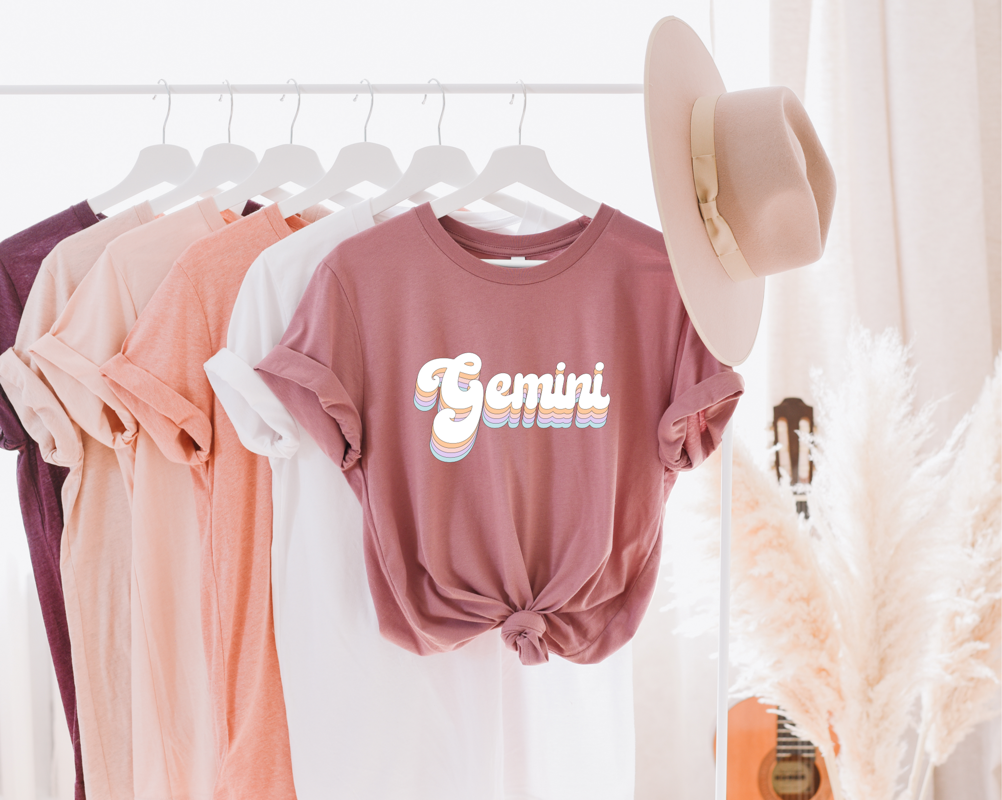 The perfect birthday gift for the Gemini in your life! Show off your Astrology / horoscope sign with this  Retro Rainbow Zodiac Themed Shirt, hoodie, or sweatshirt.