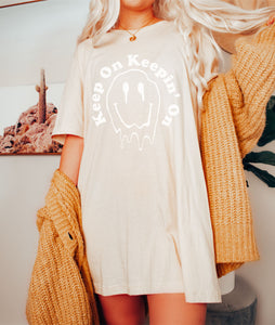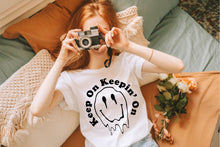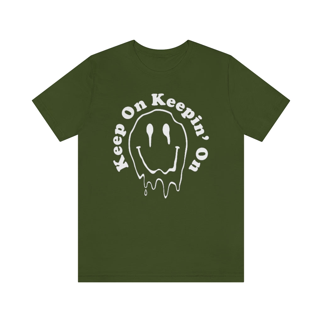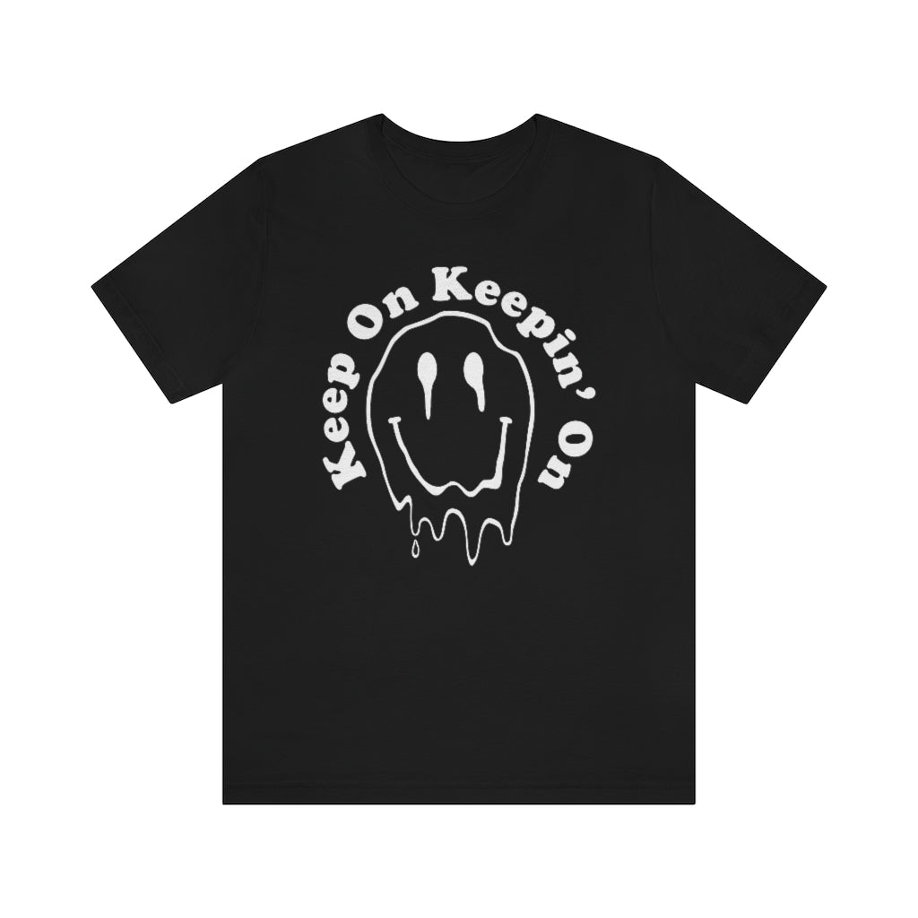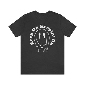 Retro Melted Smiley Face "Keep on Keepin' on" shirt