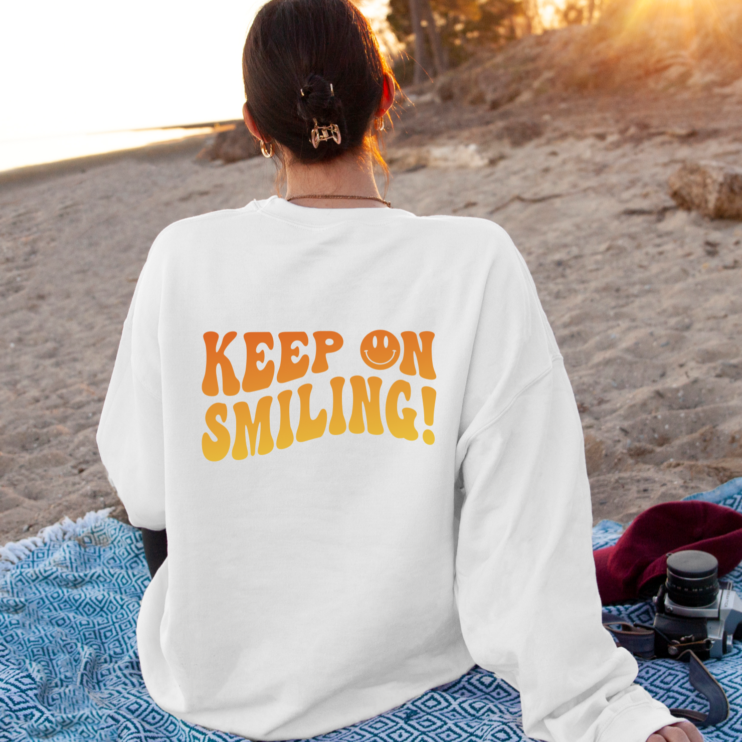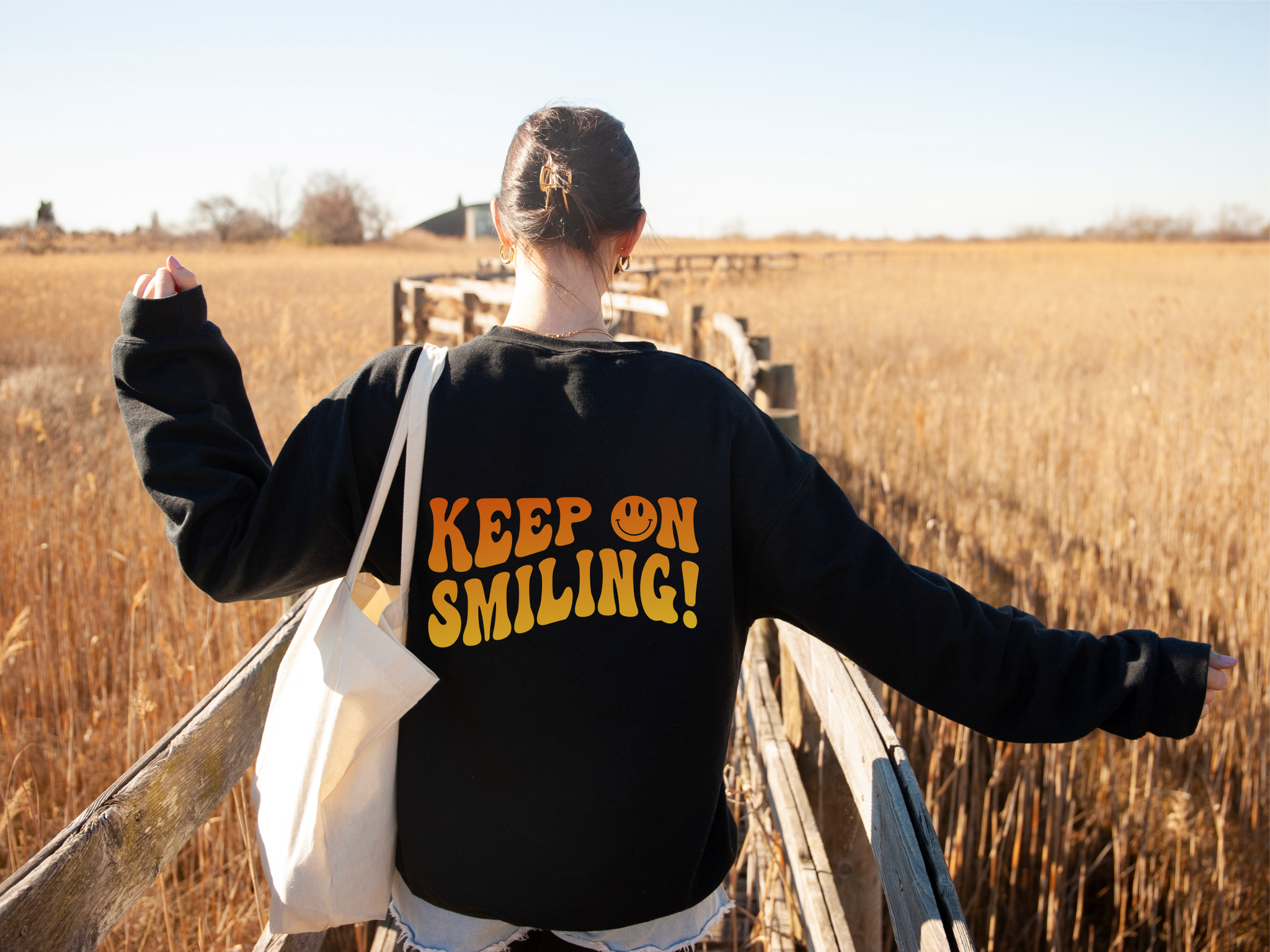 Keep on Smiling On Smiley Face Sweatshirt Crew Neck Sweatshirt