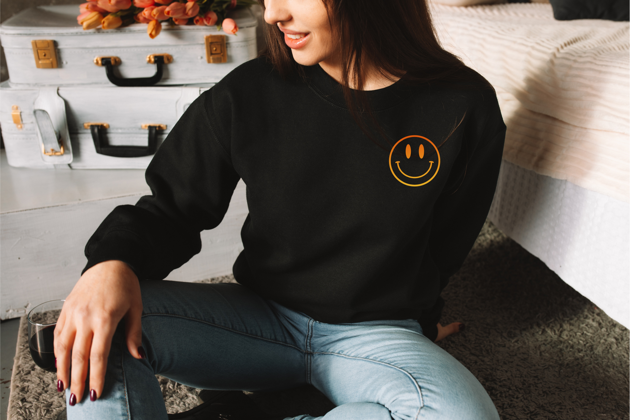 This retro 90’s y2k smiley face oversized crewneck sweatshirt is the perfect gift for any teen or college student. Printed with bold, vintage font and a classic or melting happy face. Size up for oversized comfort as you sleep, wear to class, or just lounge around.
