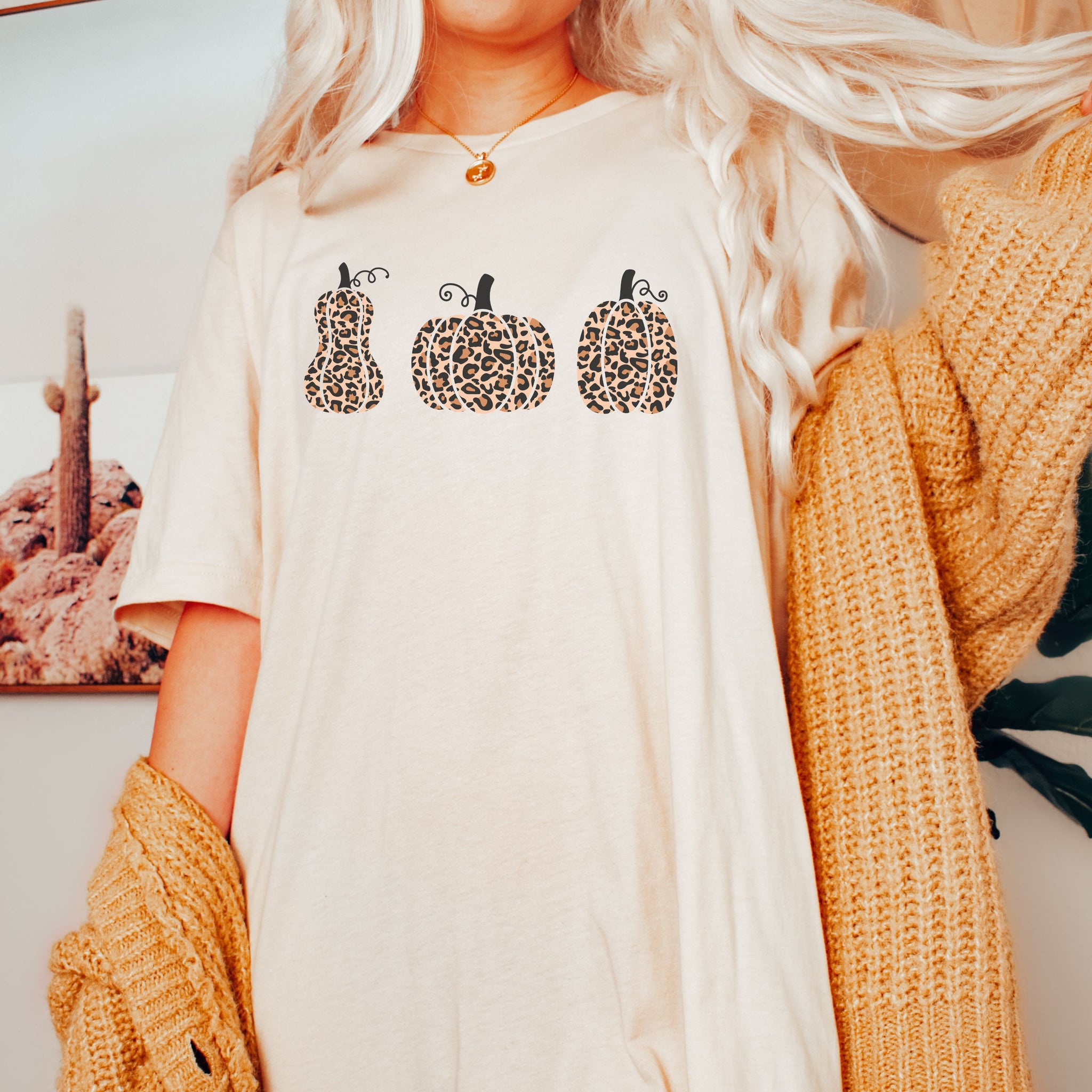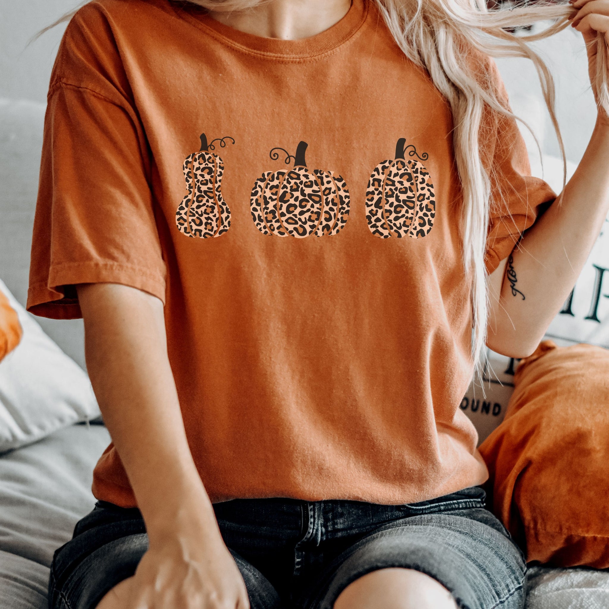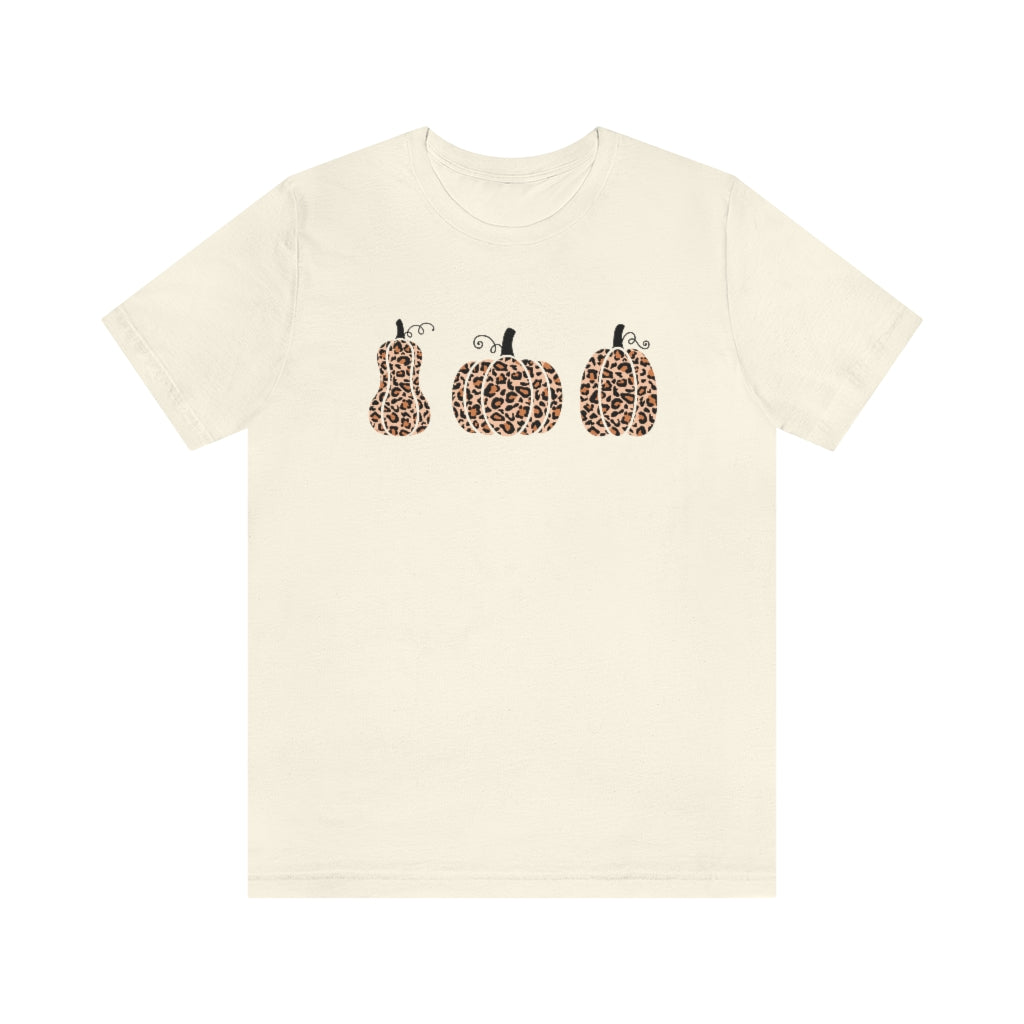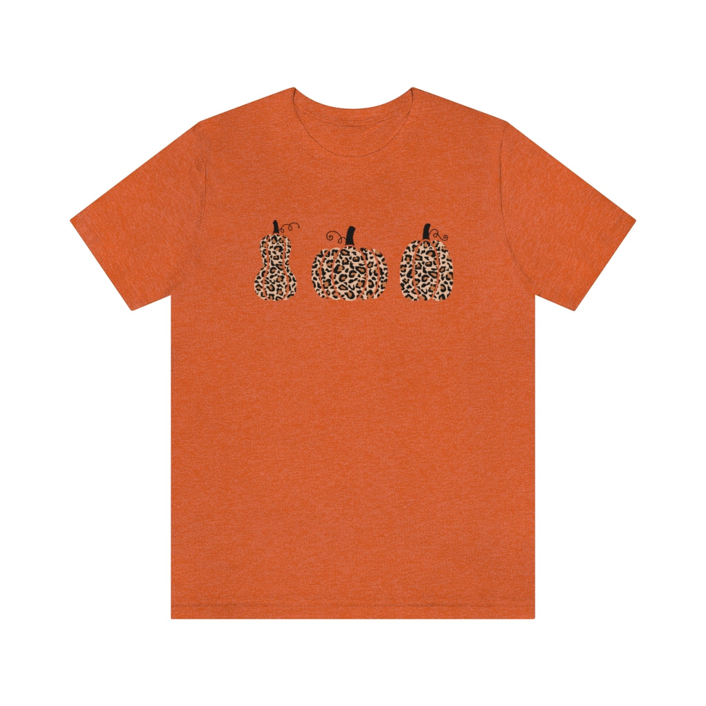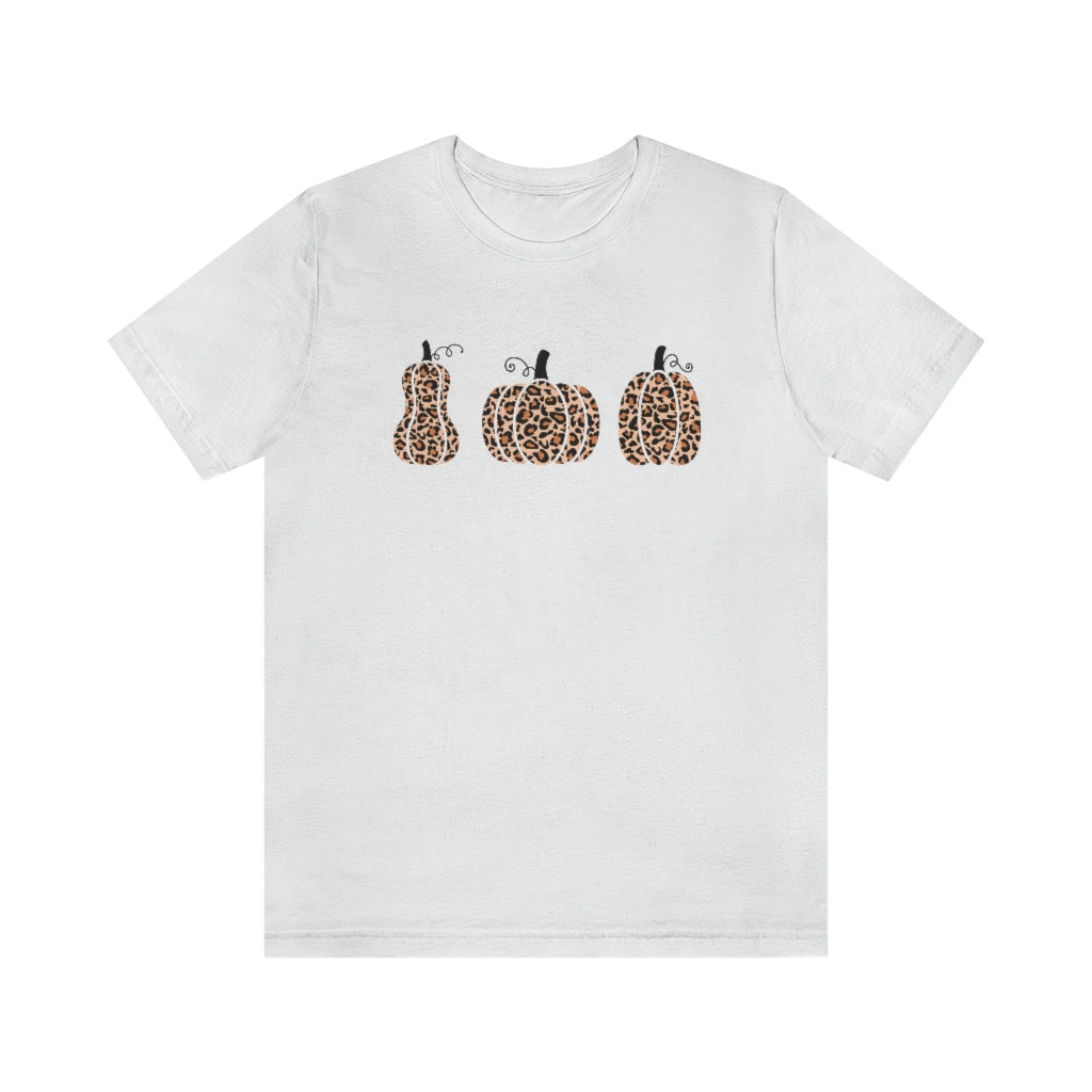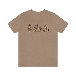 Stay Spooky all Halloween season long with this adorable t shirt featuring 3 leopard print pumpkins.