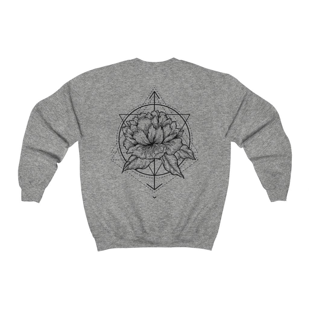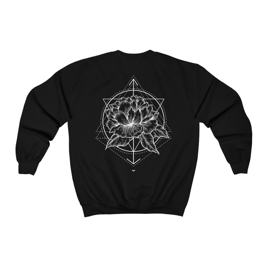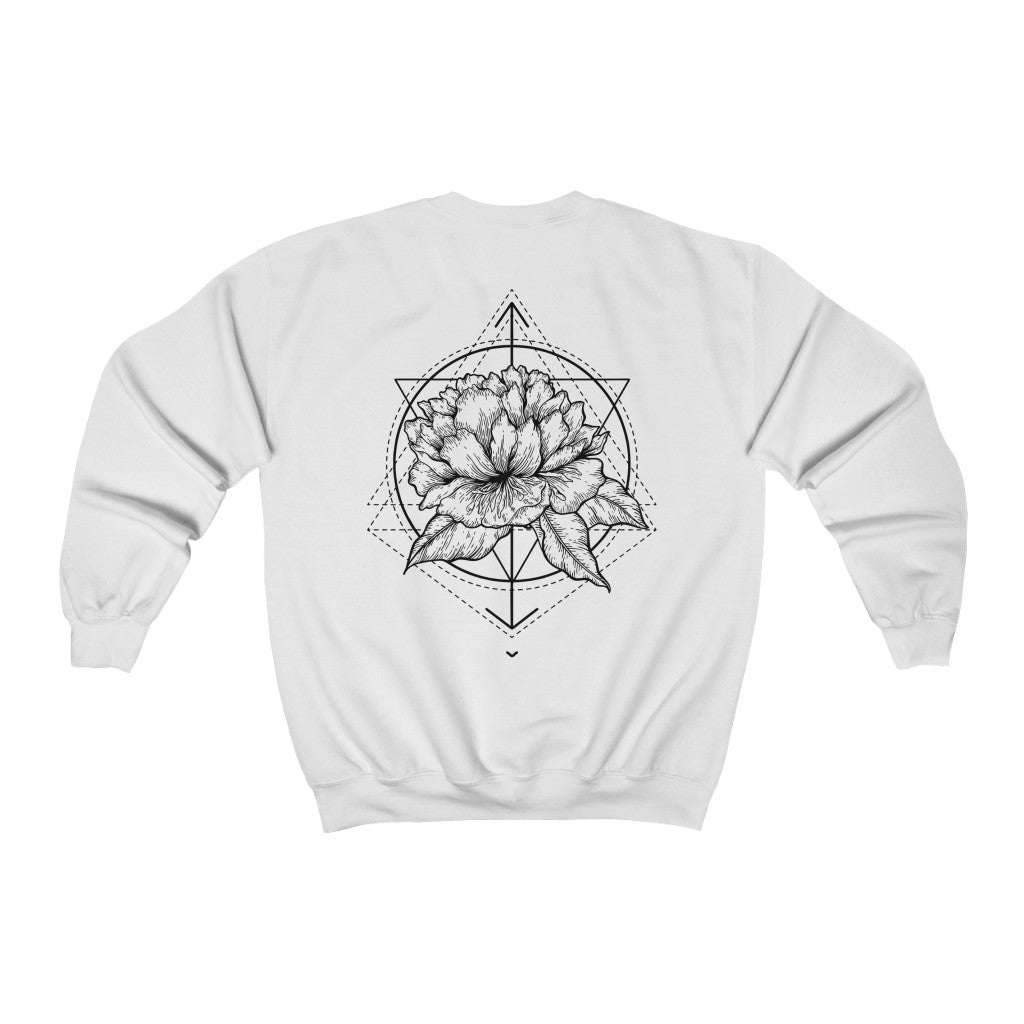 Peony Flower Geometric Tattoo Design "Floral Dynamics" Crewneck Sweatshirt