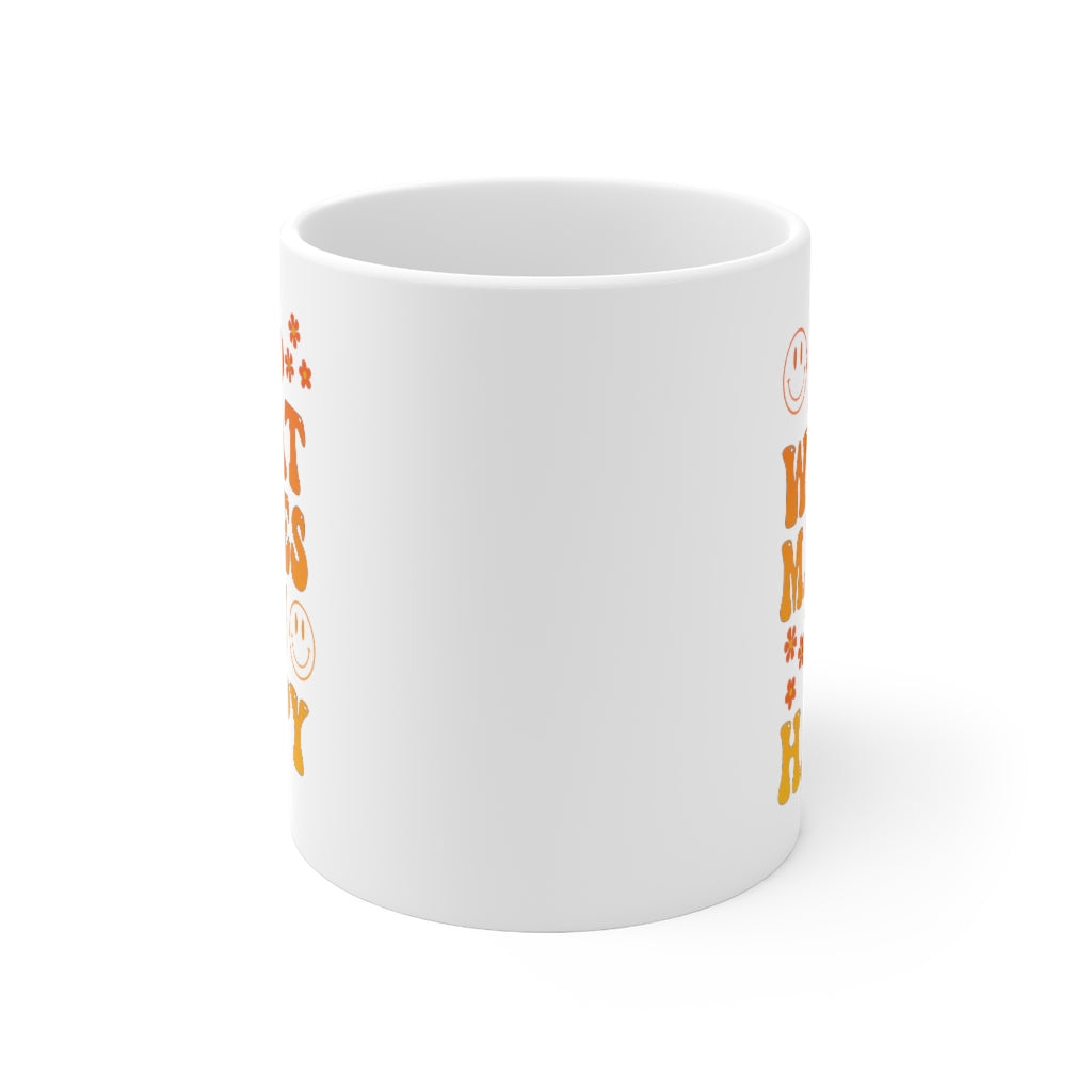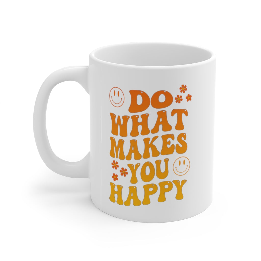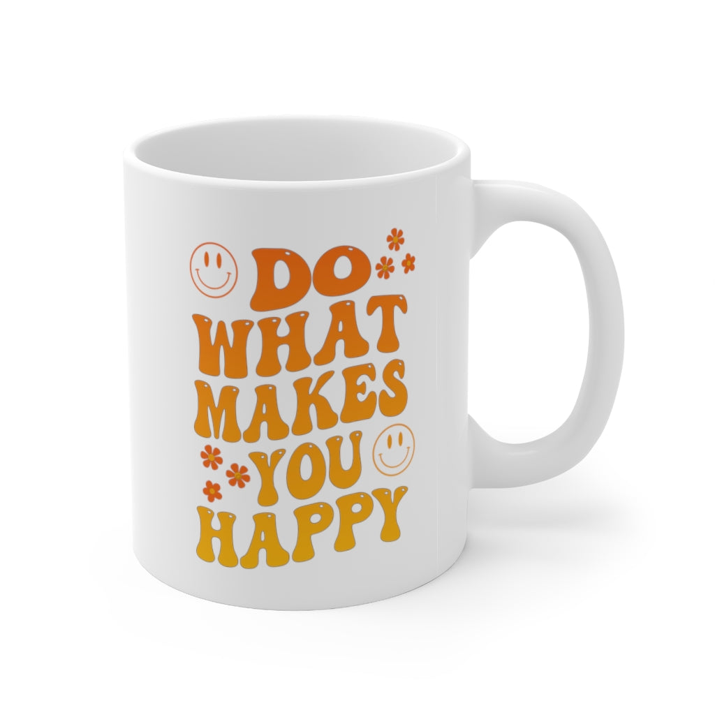 Do What Makes You Happy - Positive Quotes Coffee Mug, Retro Colorful Bubble Letters Tea Cup, Happy Quotes Coffee Cup