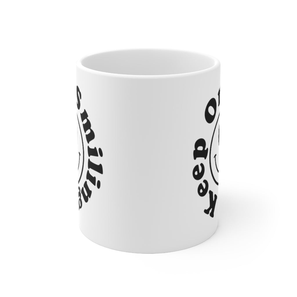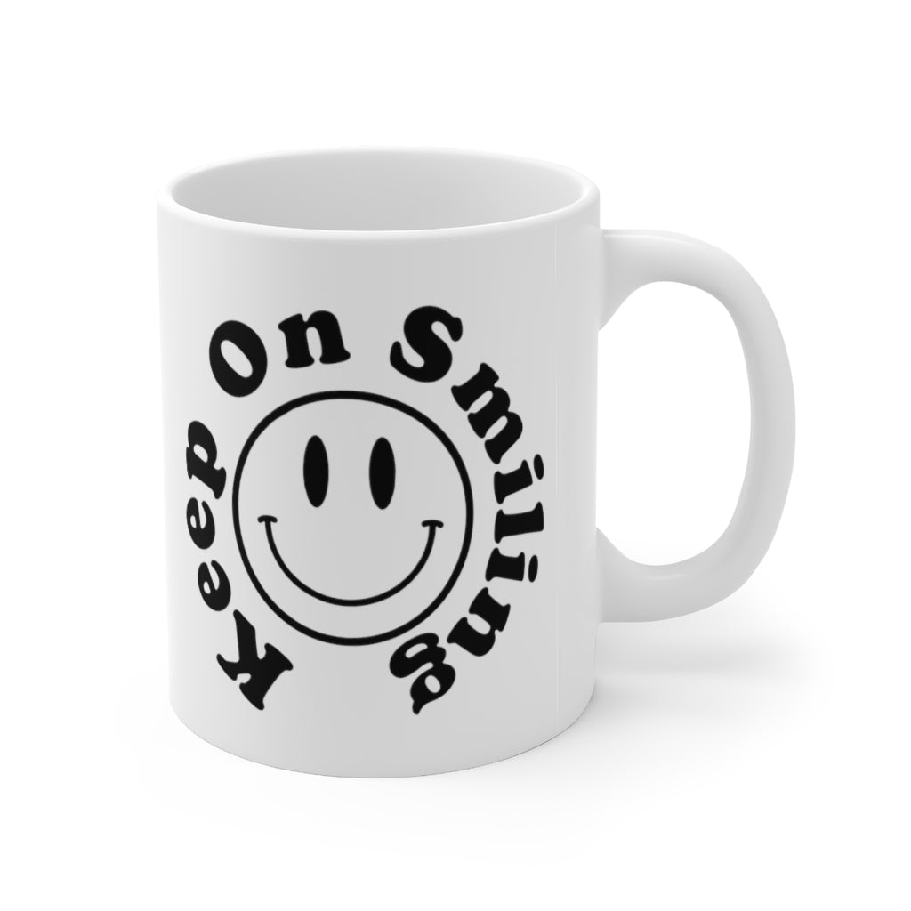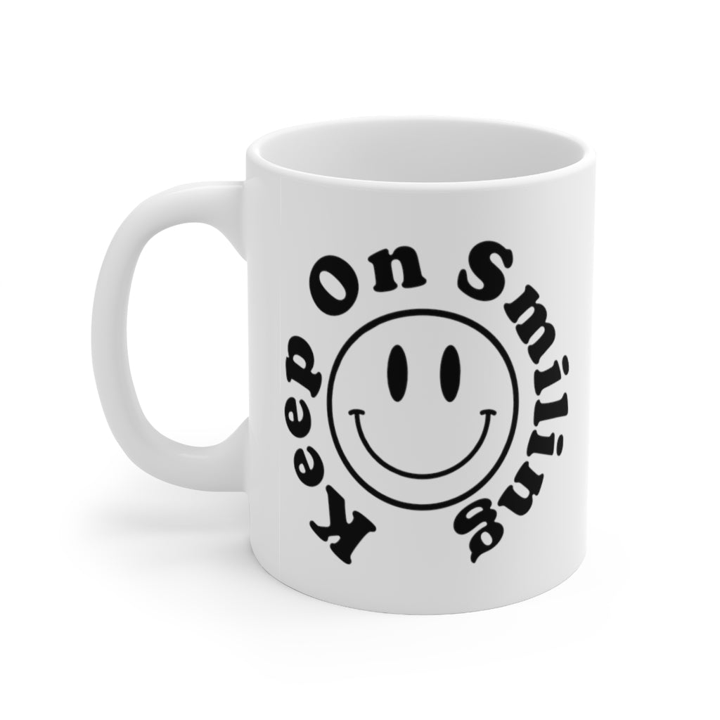 Positive Sayings Mug- Keep on Smiling Mug - Funny Quotes Coffee Mug, Retro Smiley Face Tea Mug, Vintage happy Face, Gift for Coffee Lover,