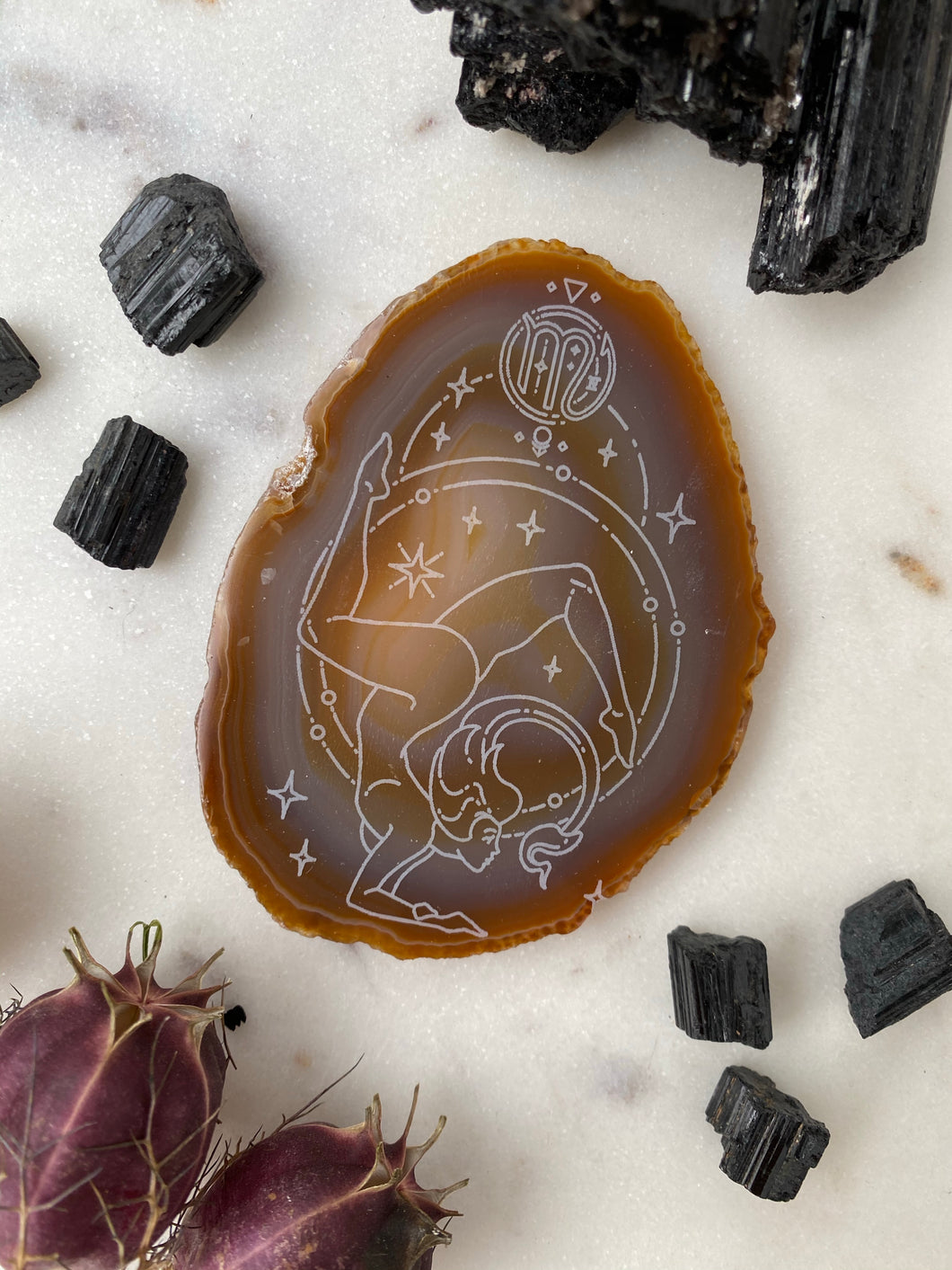 "Strength" Scorpio Zodiac Goddess Zodiac Agate Slices - Oval