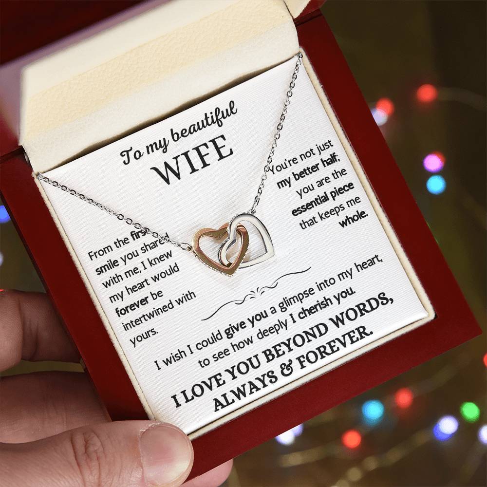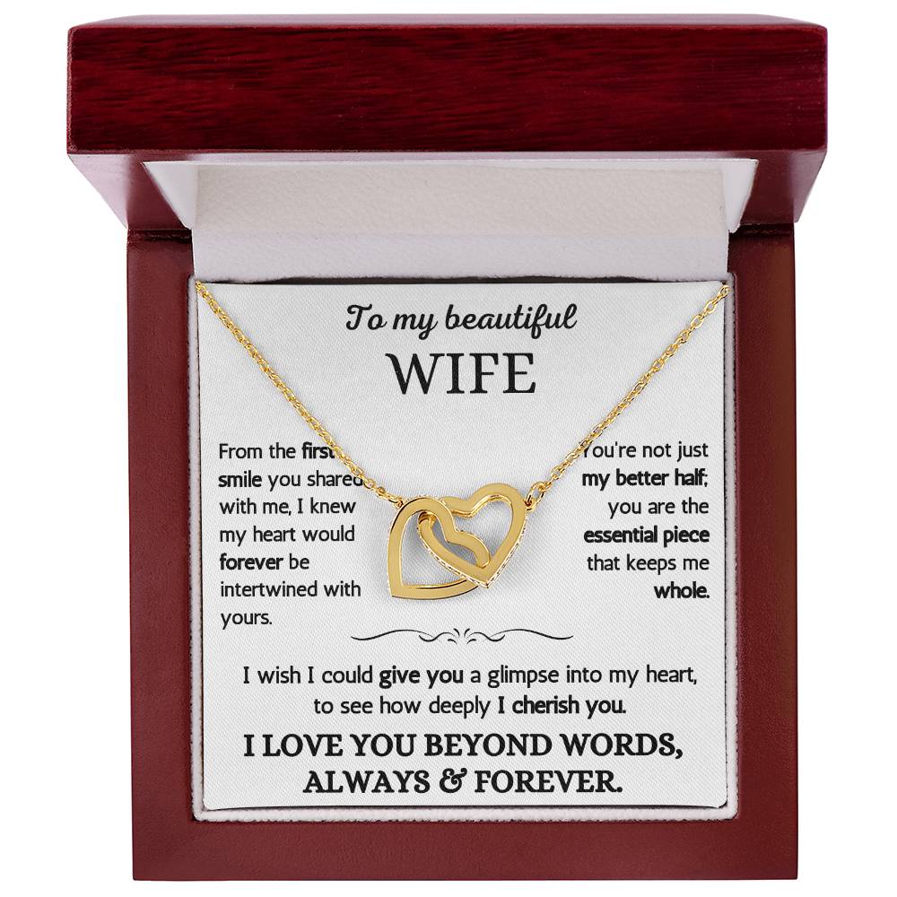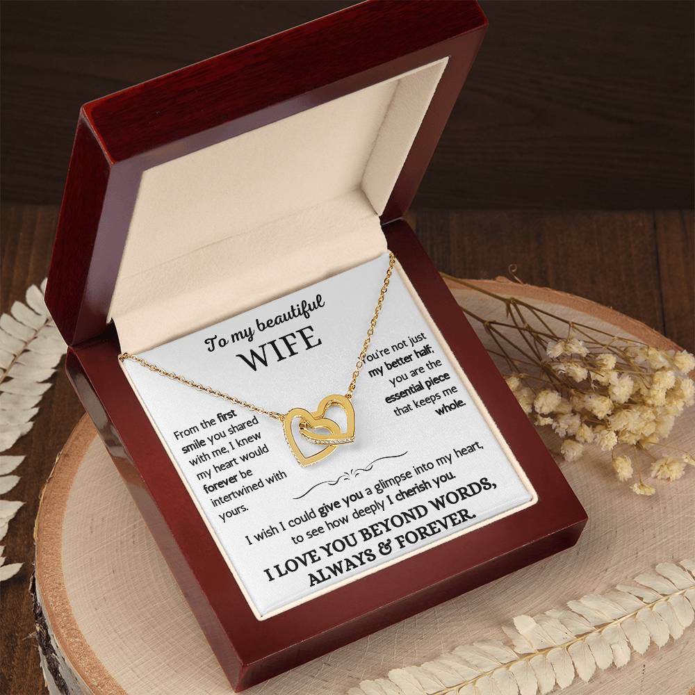 To My Beautiful Wife - I Love You Beyond Words - Intertwined Hearts Necklace